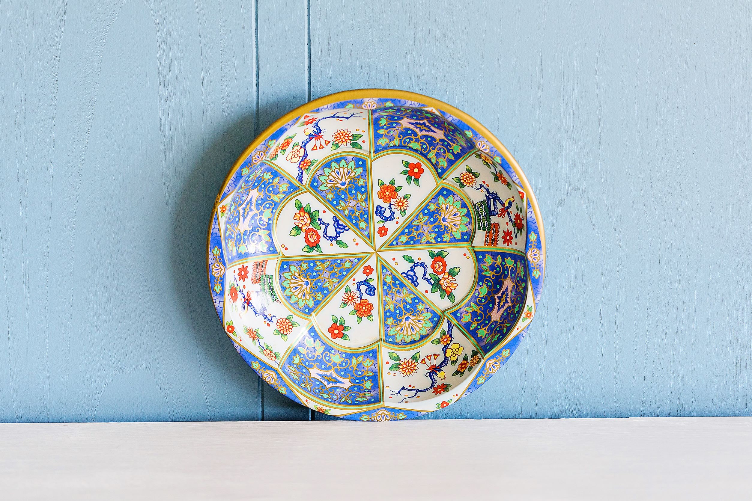 Beautiful vintage 1971 ‘Daher Decorated Ware’ metal serving bowl with bird deisgn. Designed in New York and made in England. A little bit of ware but still in beautiful condition 10' Wide & 2" Deep