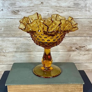 Rare Imperial Glass Company carnival glass rose bowl, features the Diamond Ring pattern with a scalloped edge in a beautiful carnival iridescent marigold color!