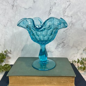 dimensions: green vase: 3.5 inches tall, 6.5 inches wide. Blue vase 4.5 inches tall, 4 inches wide.