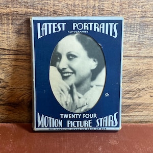 RARE FIND! Complete 24 card set canary colored box of Kashin publications latest portraits autographed motion picture stars.
