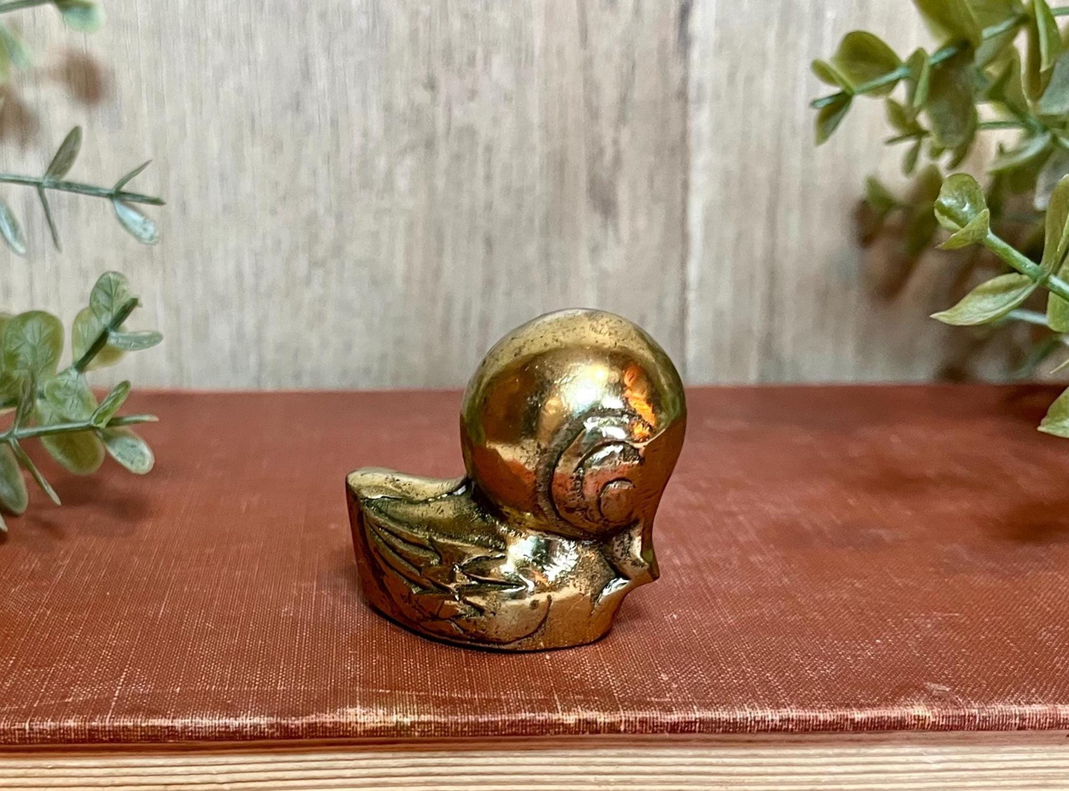 This delicate 1 1/2 inch tall vintage brass duck is the perfect little detail to add to any desk or shelf decor. Standing 1.5 inches tall with etched details, it is a mix of woodland and regency.