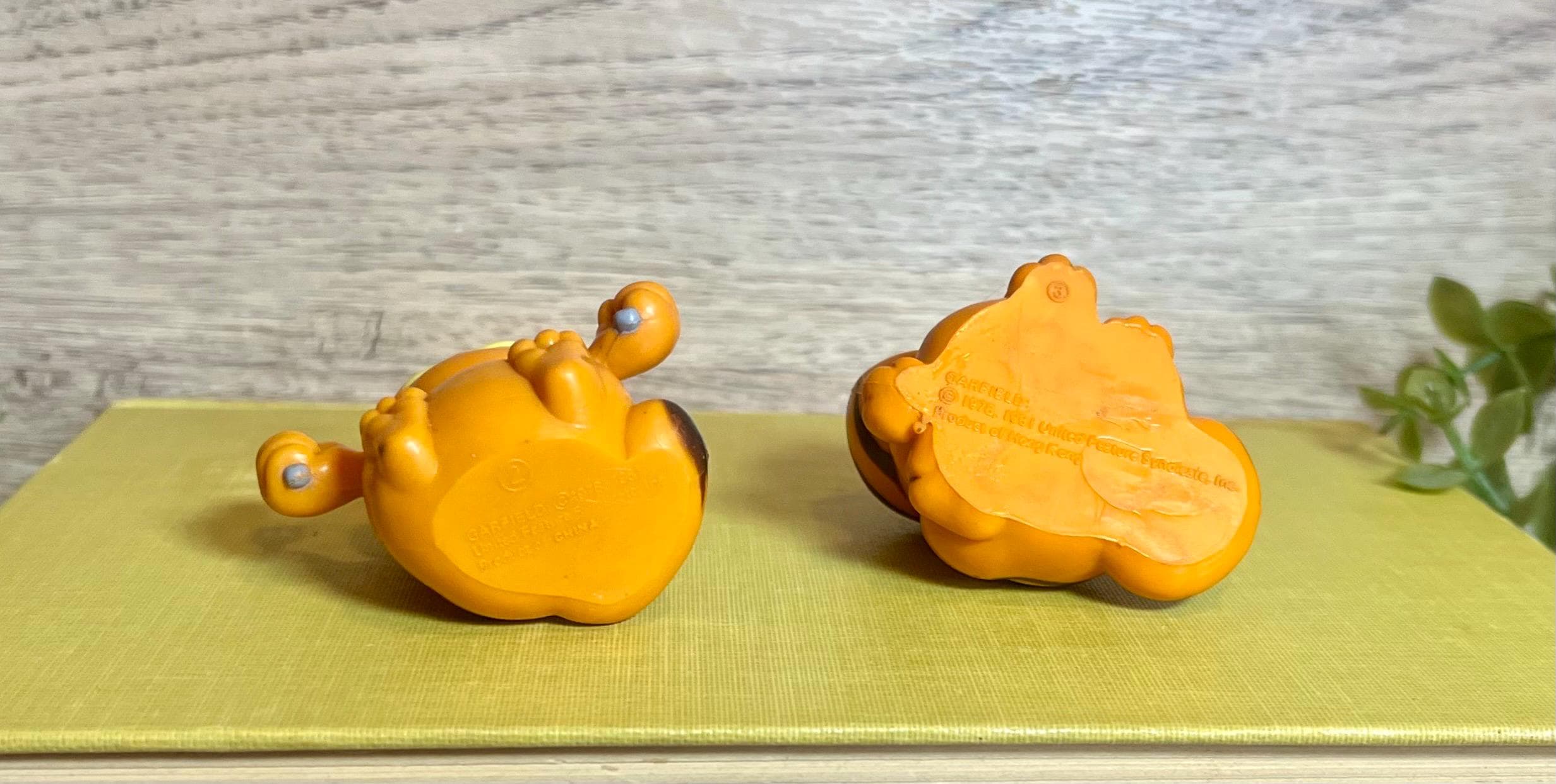 Bring a touch of 80s nostalgia to your collection with this adorable pair of vintage Garfield figurines! Featuring the iconic lasagna-loving cat created by Jim Davis, these plastic figures capture Garfield’s classic smug charm.