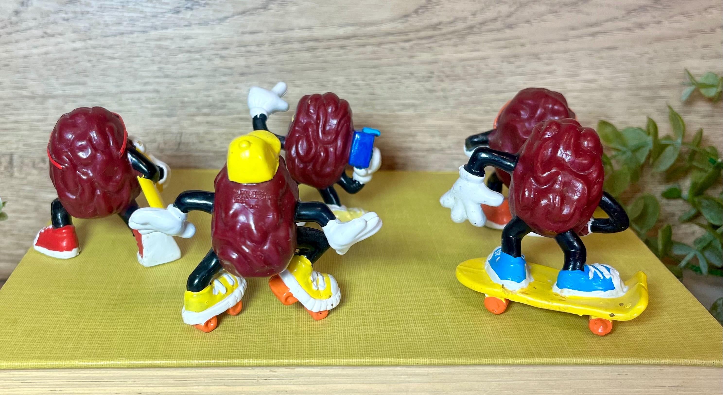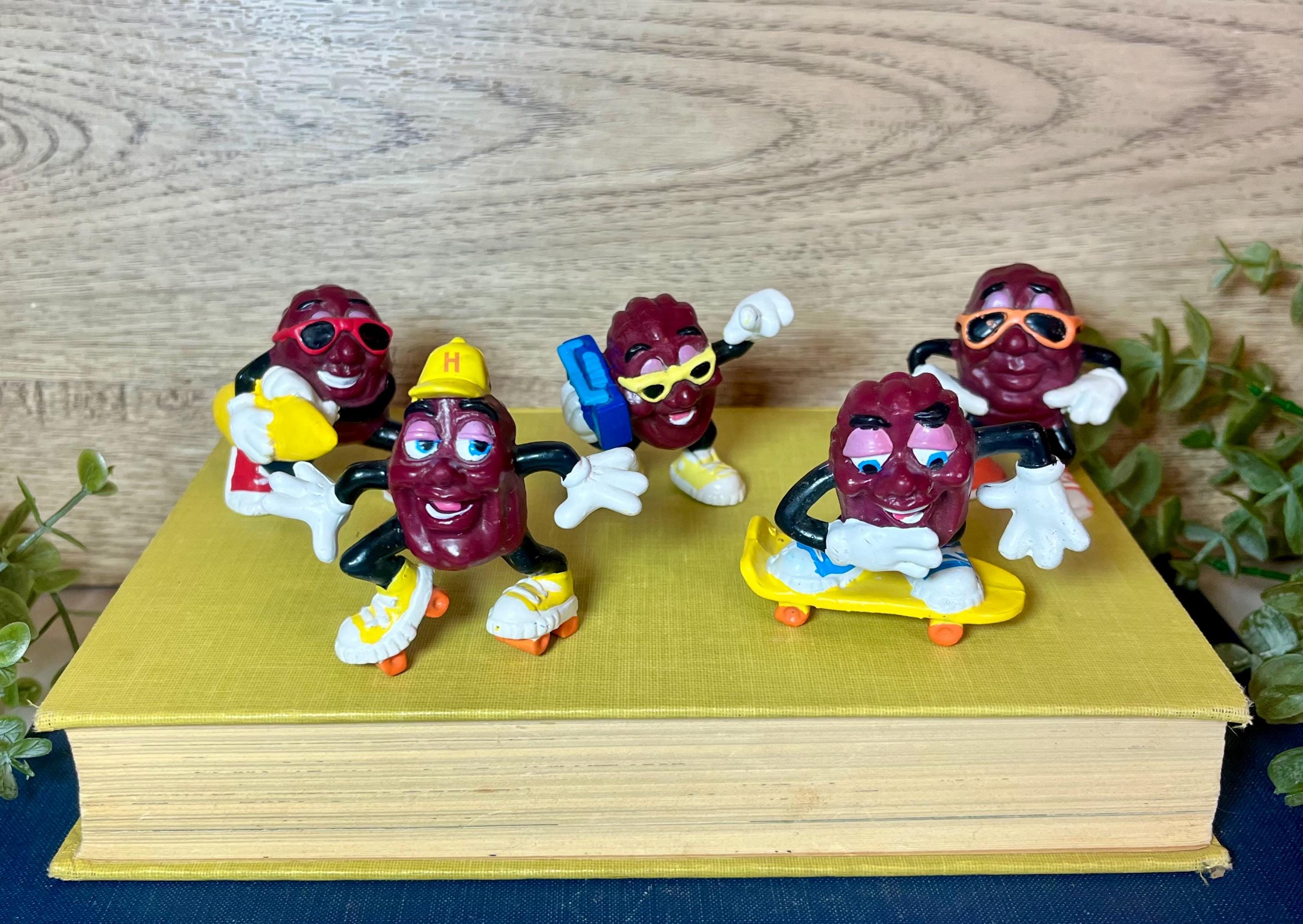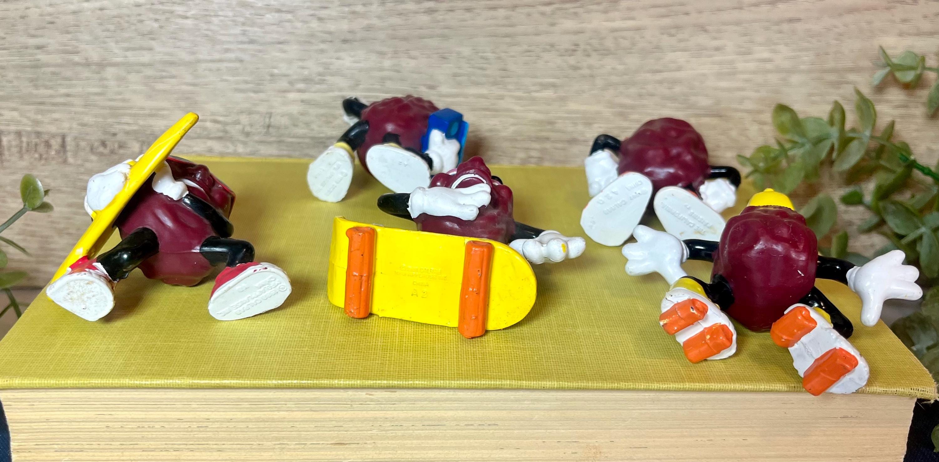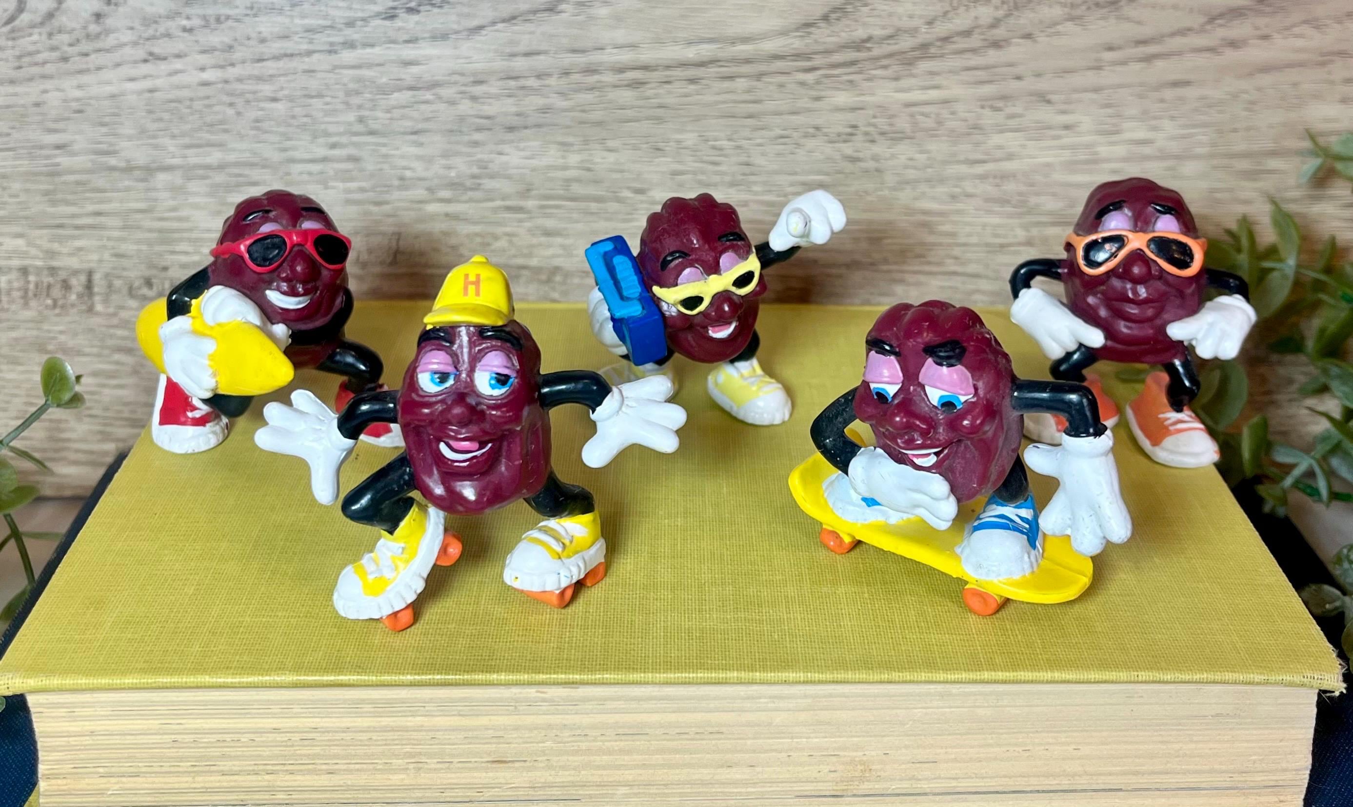 Bring a touch of retro charm to your collection with this set of 5 vintage California Raisins figurines! These iconic 1980s collectibles feature the beloved raisin characters in fun poses—skating surfing, and rocking out with their cool sneakers and classic expressions.