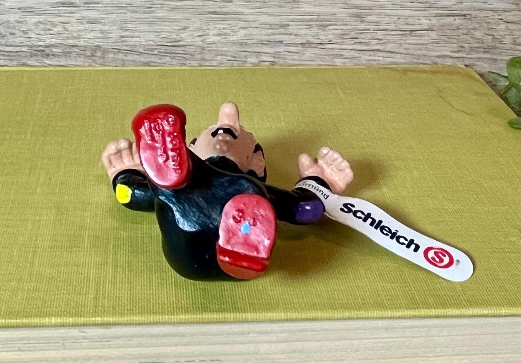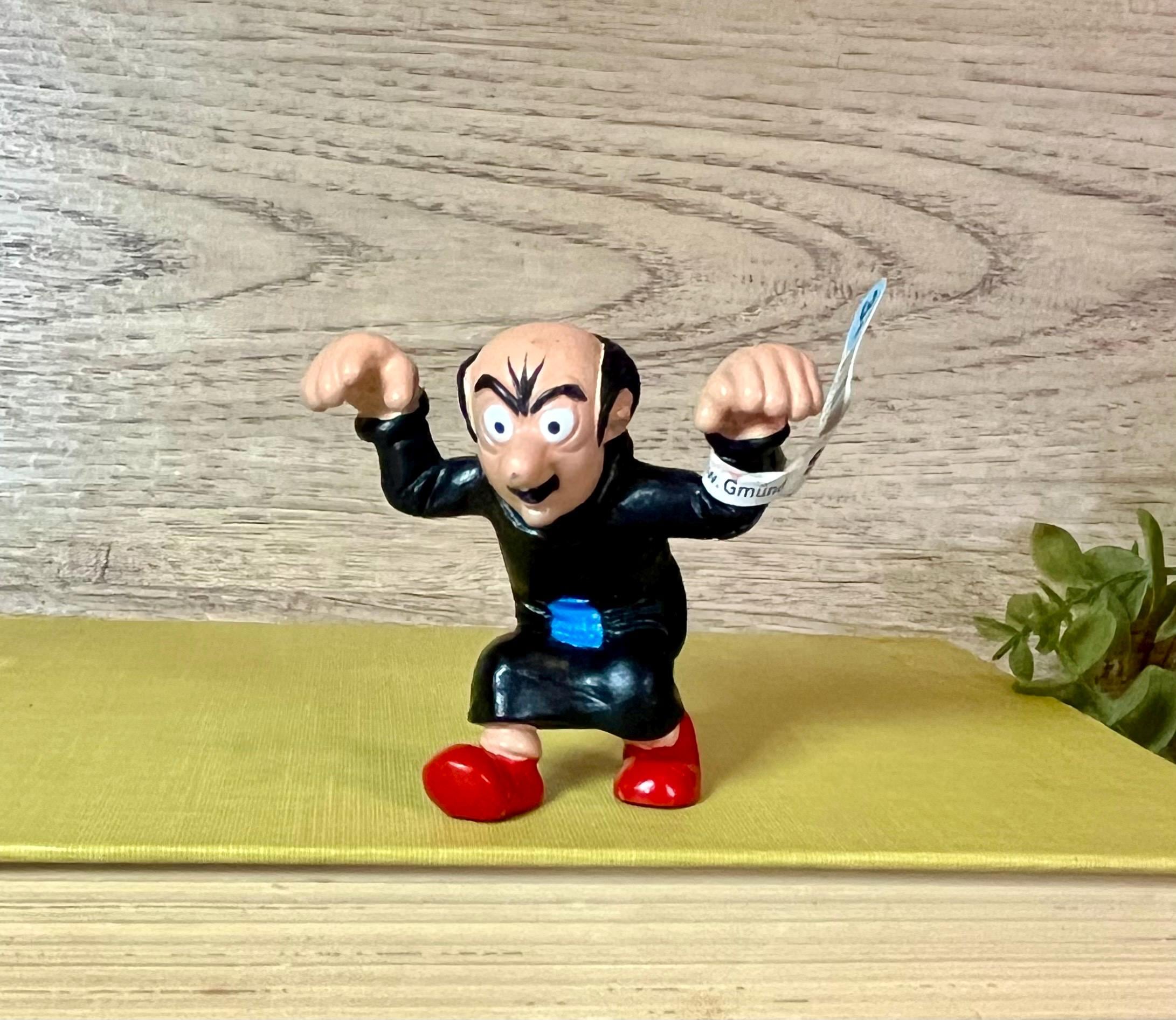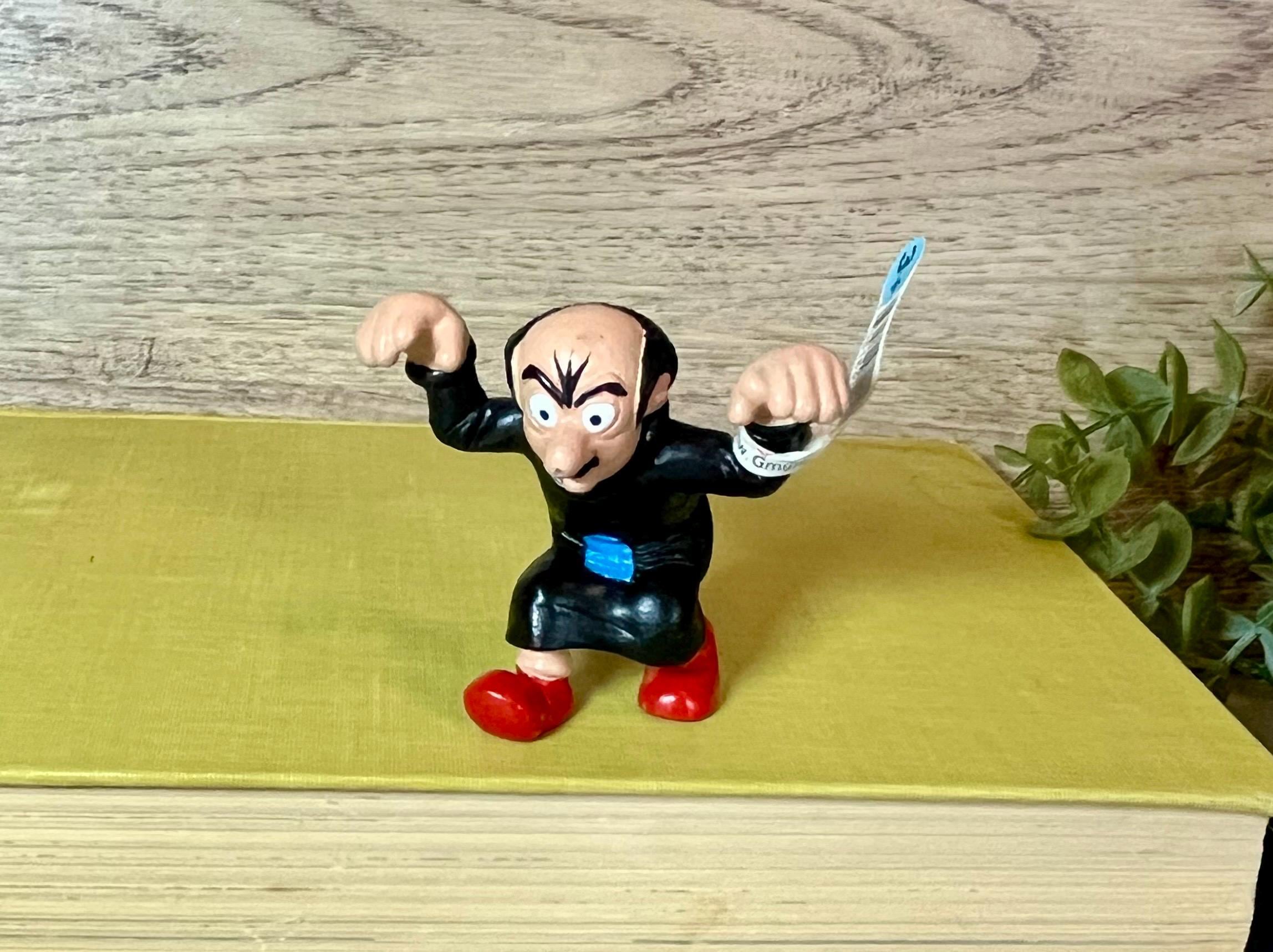 Complete your Smurf collection with this classic Gargamel figurine – the mischievous villain from the beloved Smurfs series! Originally produced by Peyo/Schleich in the 1990s, this PVC collectible captures Gargamel’s trademark sneaky expression, bald head, and black robe with bright red shoes. Still with original tag!