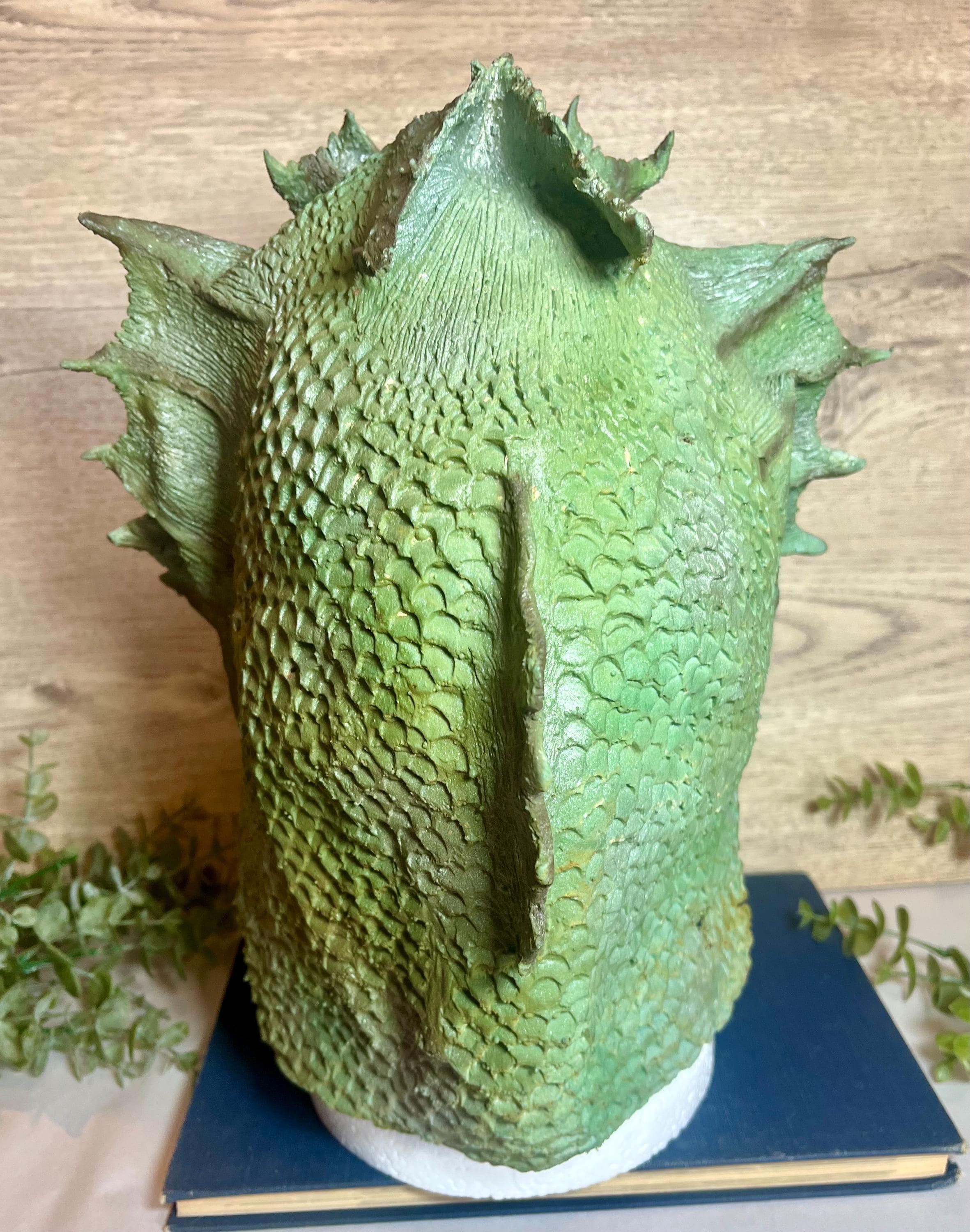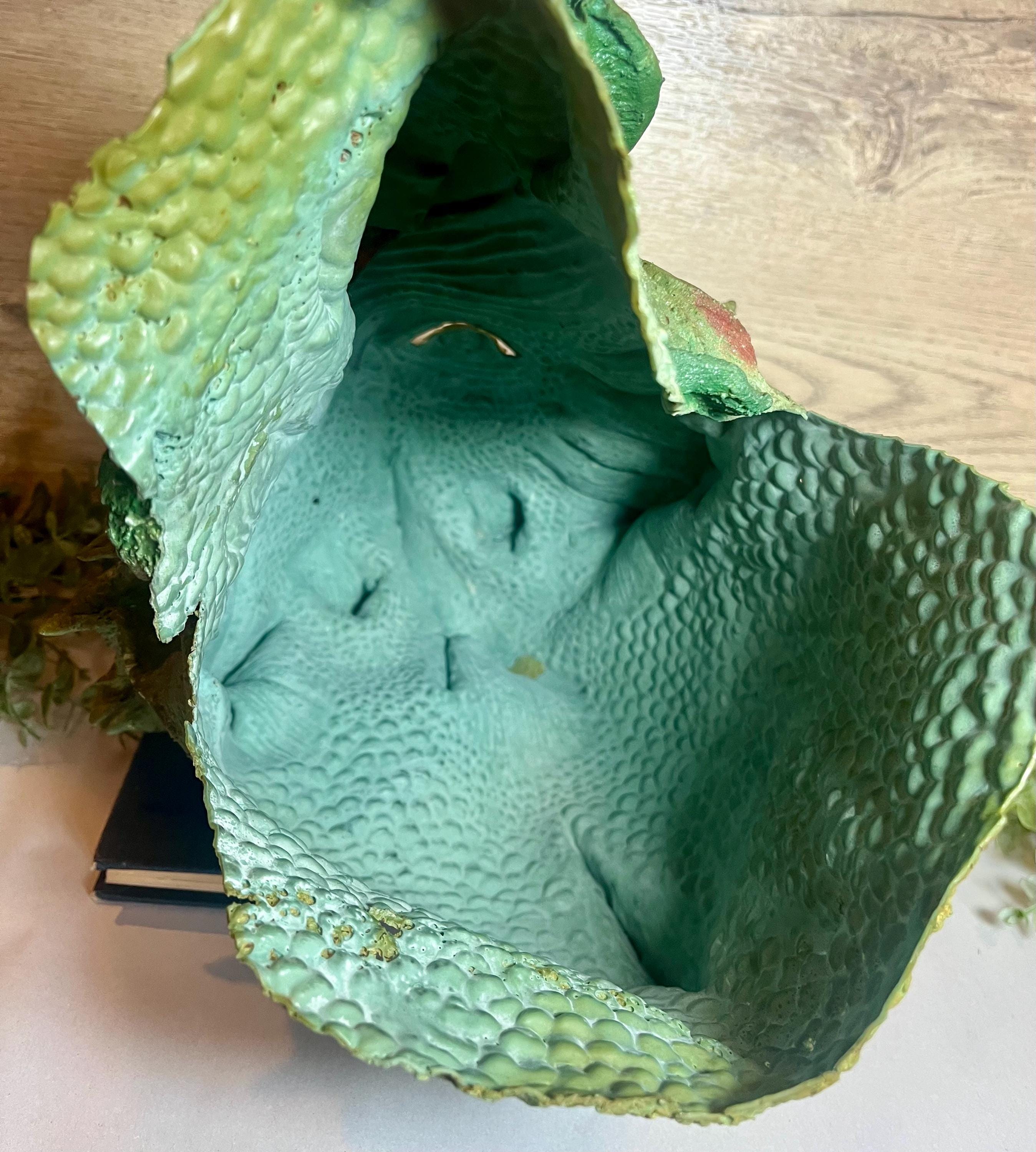 Details: • Style: Sea Creature / Monster mask • Features: Large fanged mouth, textured scales, bulging eyes, tongue detail • Material: Latex/rubber • Era: Believed to be 1940s vintage • Size: Adult head size (approx. 10–11” tall)
