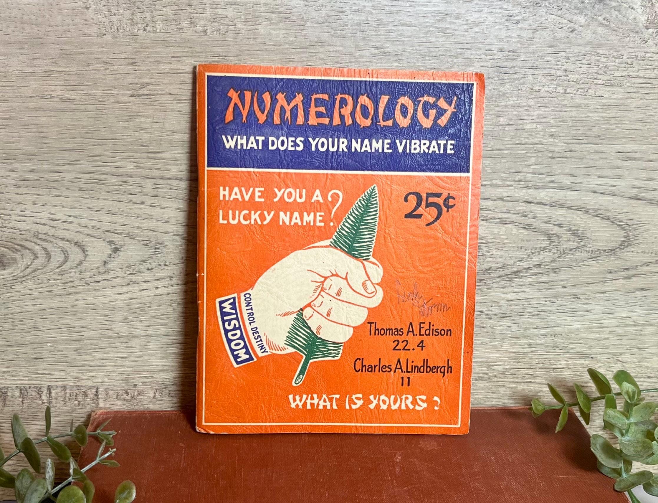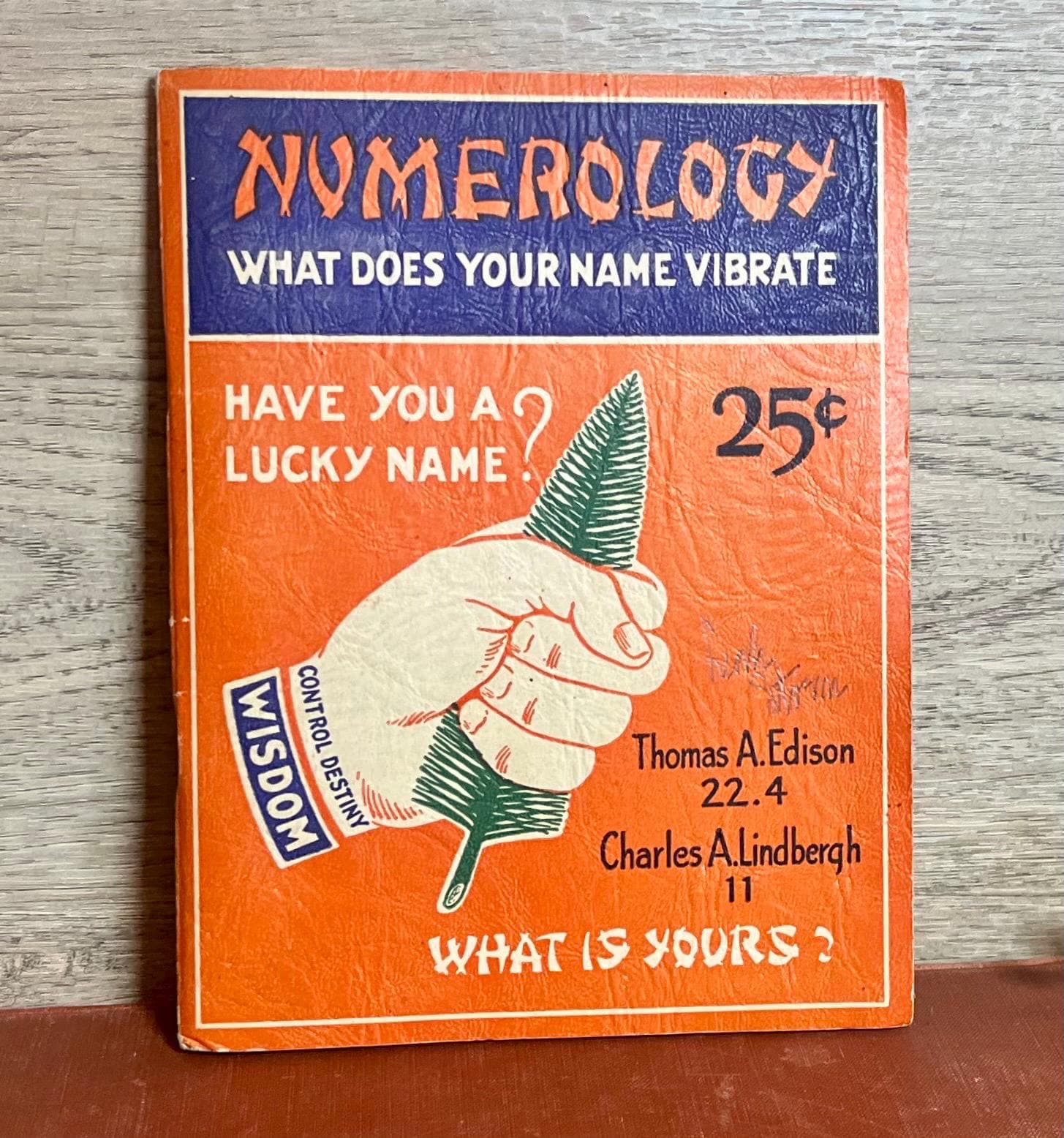 Discover the mystical charm of early 20th-century fortune-telling with this original vintage Numerology booklet, titled “What Does Your Name Vibrate?” Priced originally at 25¢, this curious little guide promised to reveal whether you had a lucky name and how numbers could control your destiny.