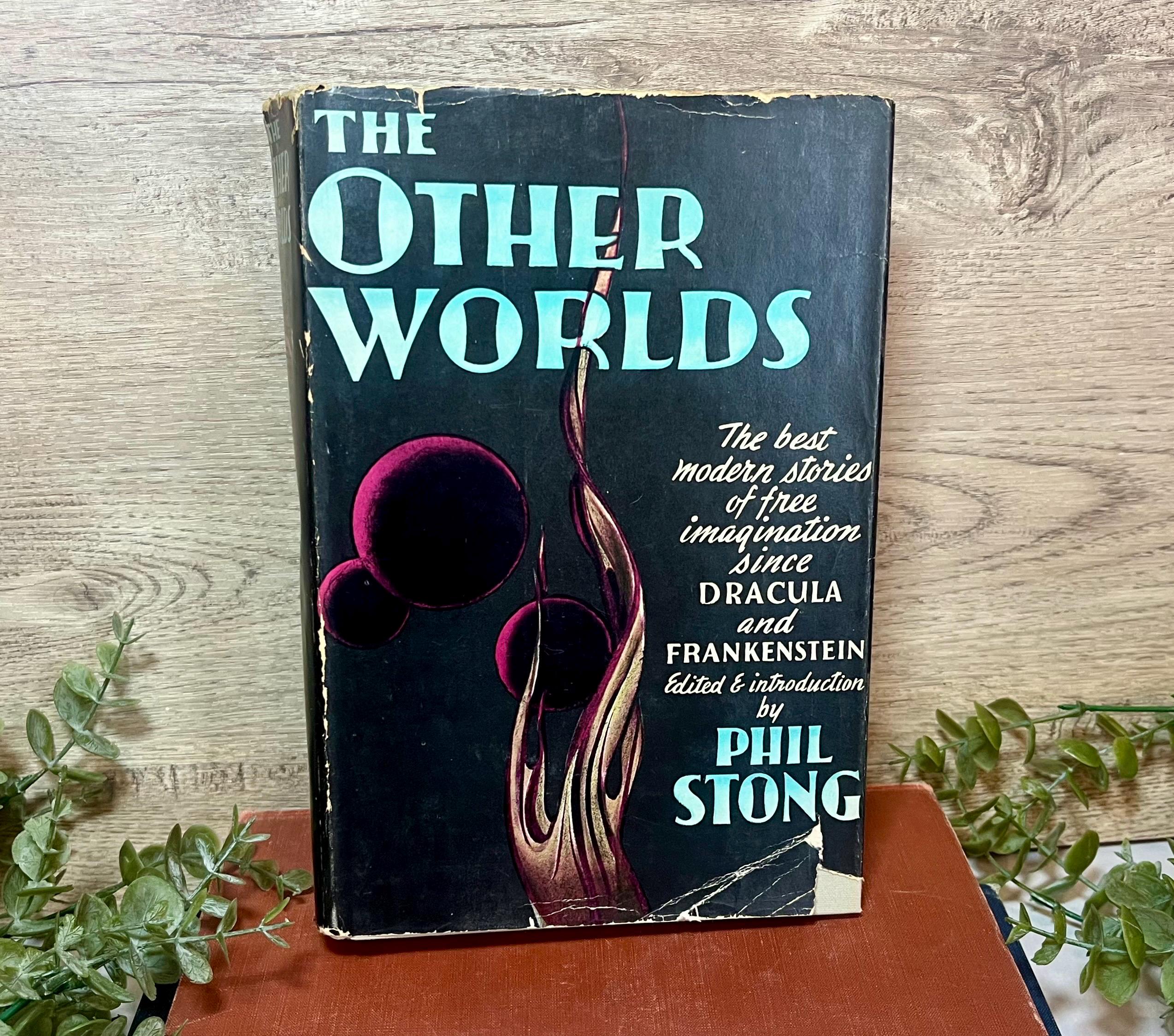 π About the Book: β’ Title: The Other Worlds β’ Editor: Phil Stong β’ Publisher: Wilfred Funk, 1941 β’ Binding: Hardcover with original dust jacket β’ Condition: Dust jacket shows wear with small chips and edge tears (see photos), but still retains its striking surrealist artwork. The book itself is intact, pages are clean with light age-toning consistent with age. β’ Contents: Features a collection of early 20th-century fantasy, science fiction, and horror stories. Billed as βthe best modern stories of the imagination since Dracula and Frankenstein,β this anthology is a cornerstone piece for collectors.