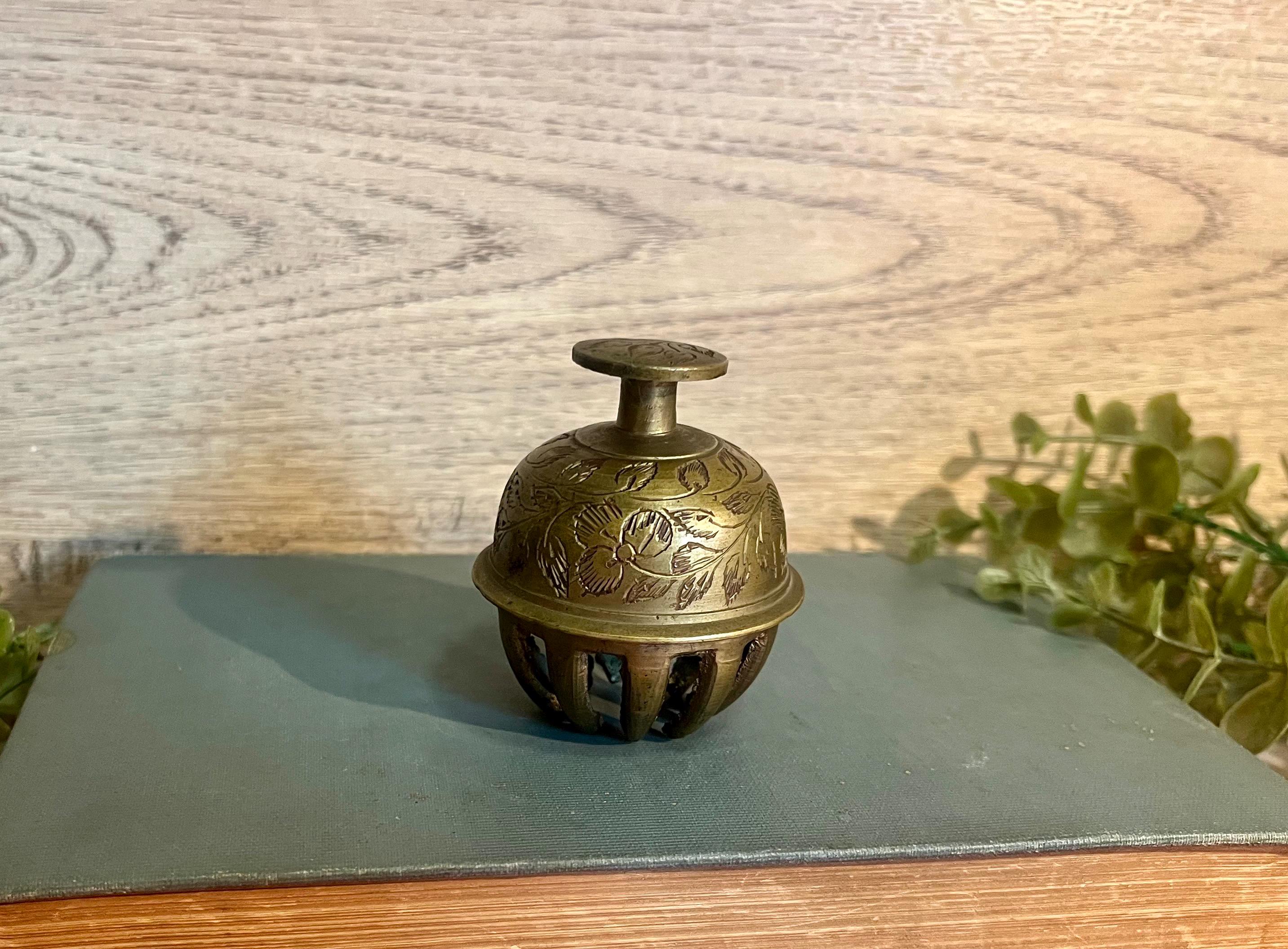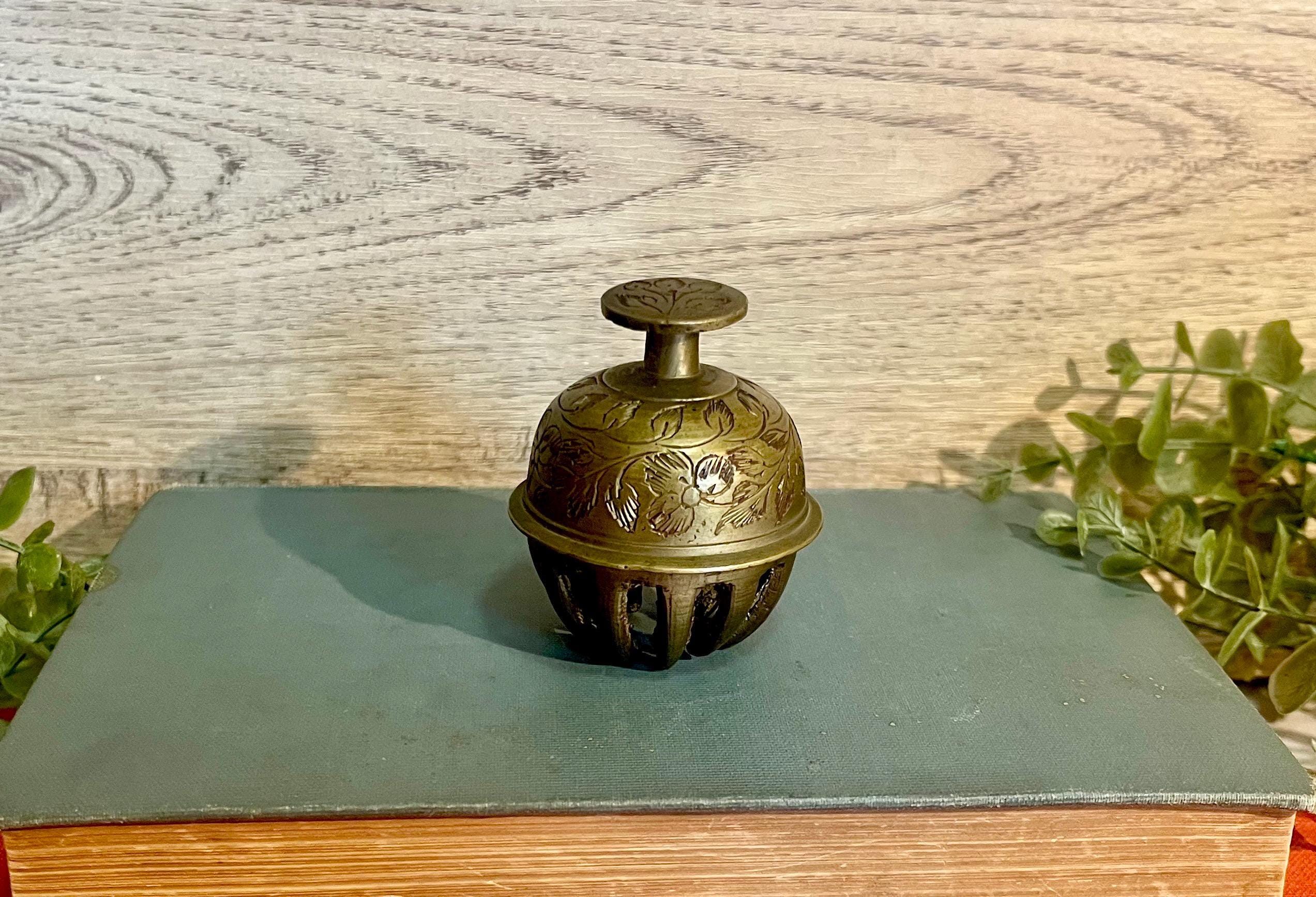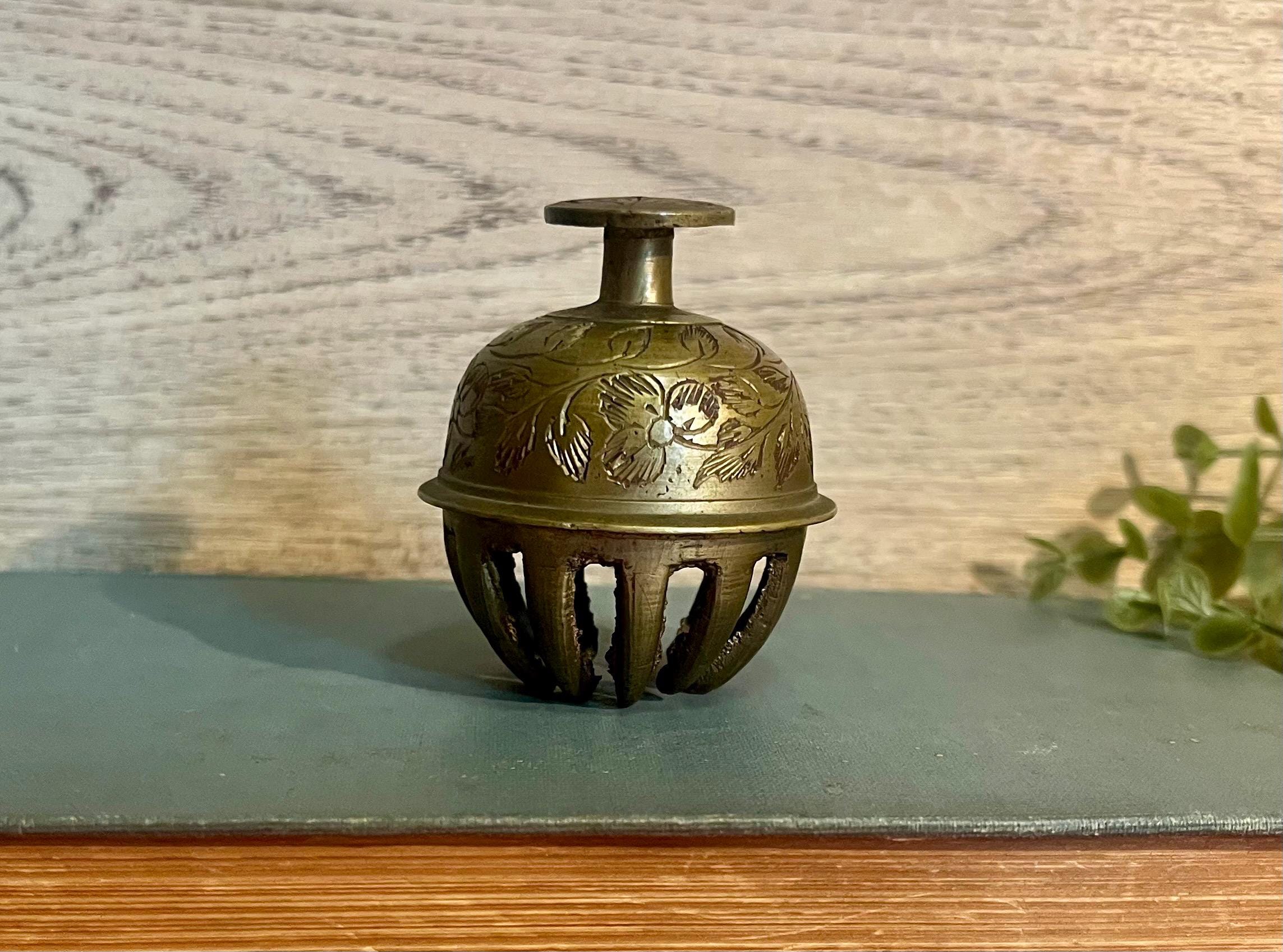 When rung, it produces a warm, pleasant chime — the kind of subtle sound often found in vintage Indian or Southeast Asian brasswork. Perfect for collectors of antique bells, animal-themed decor, or global artisan pieces, this bell also makes a wonderful accent for a boho or rustic-style home.