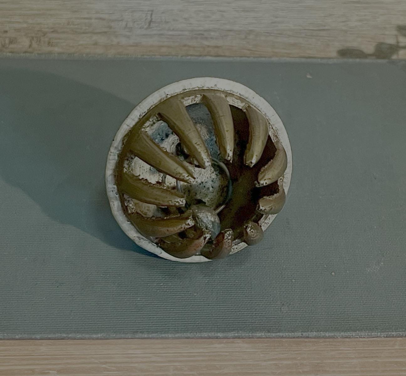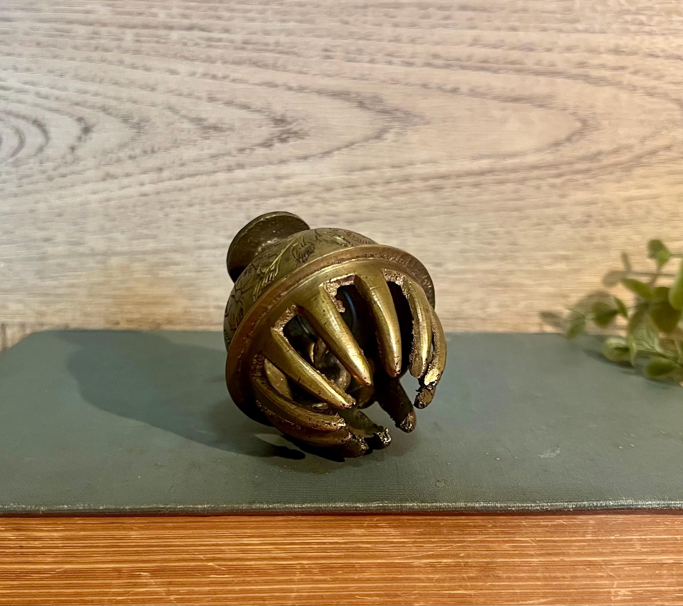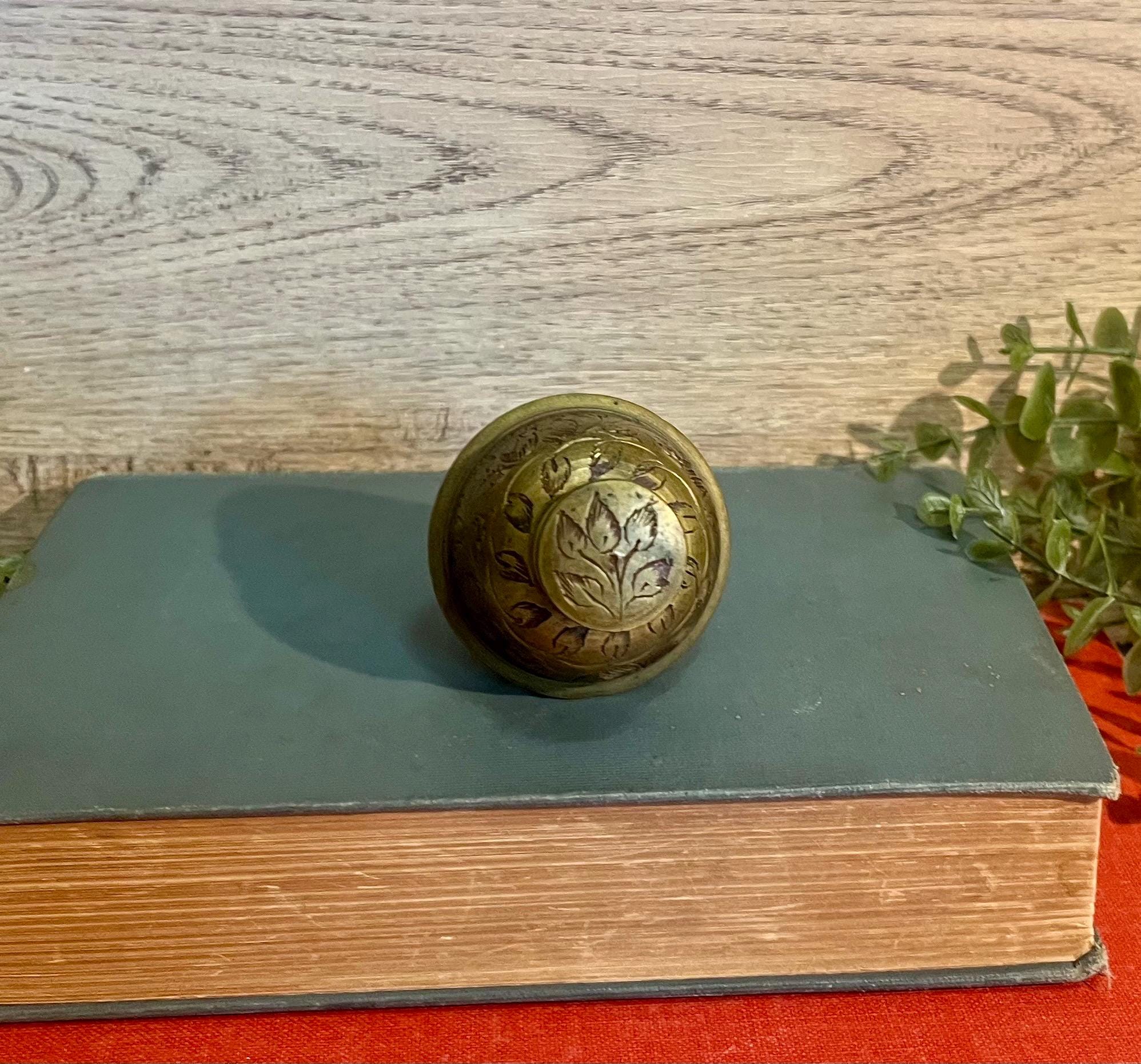✨ Item Details: • Material: Solid brass • Design: Brass claw base with floral etching on dome • Color/Finish: Aged gold brass with natural patina • Condition: Good vintage condition with light surface wear from age (see photos) • Size: Approx. 2.5” tall x 2” wide • Era: Early 1900s