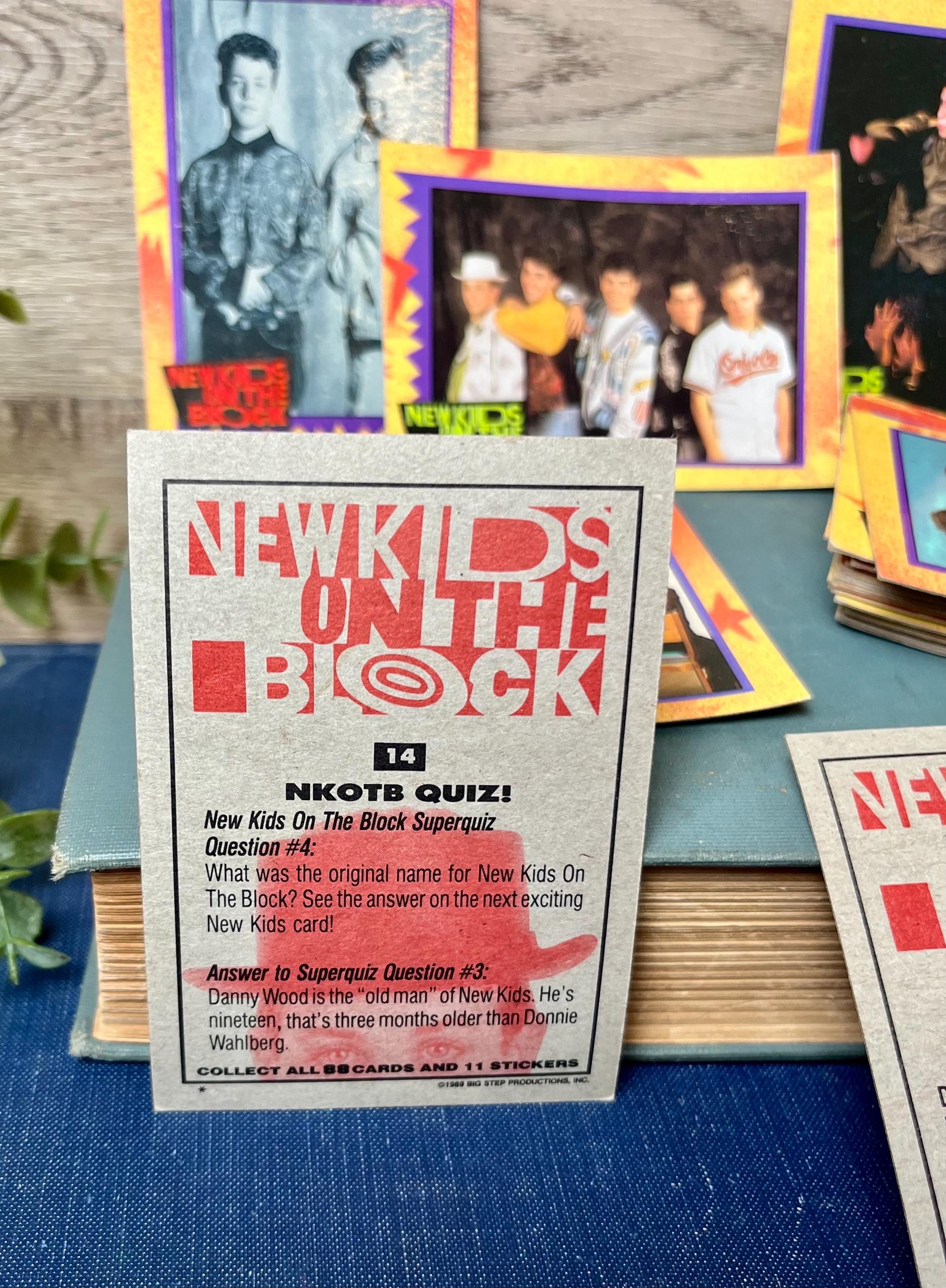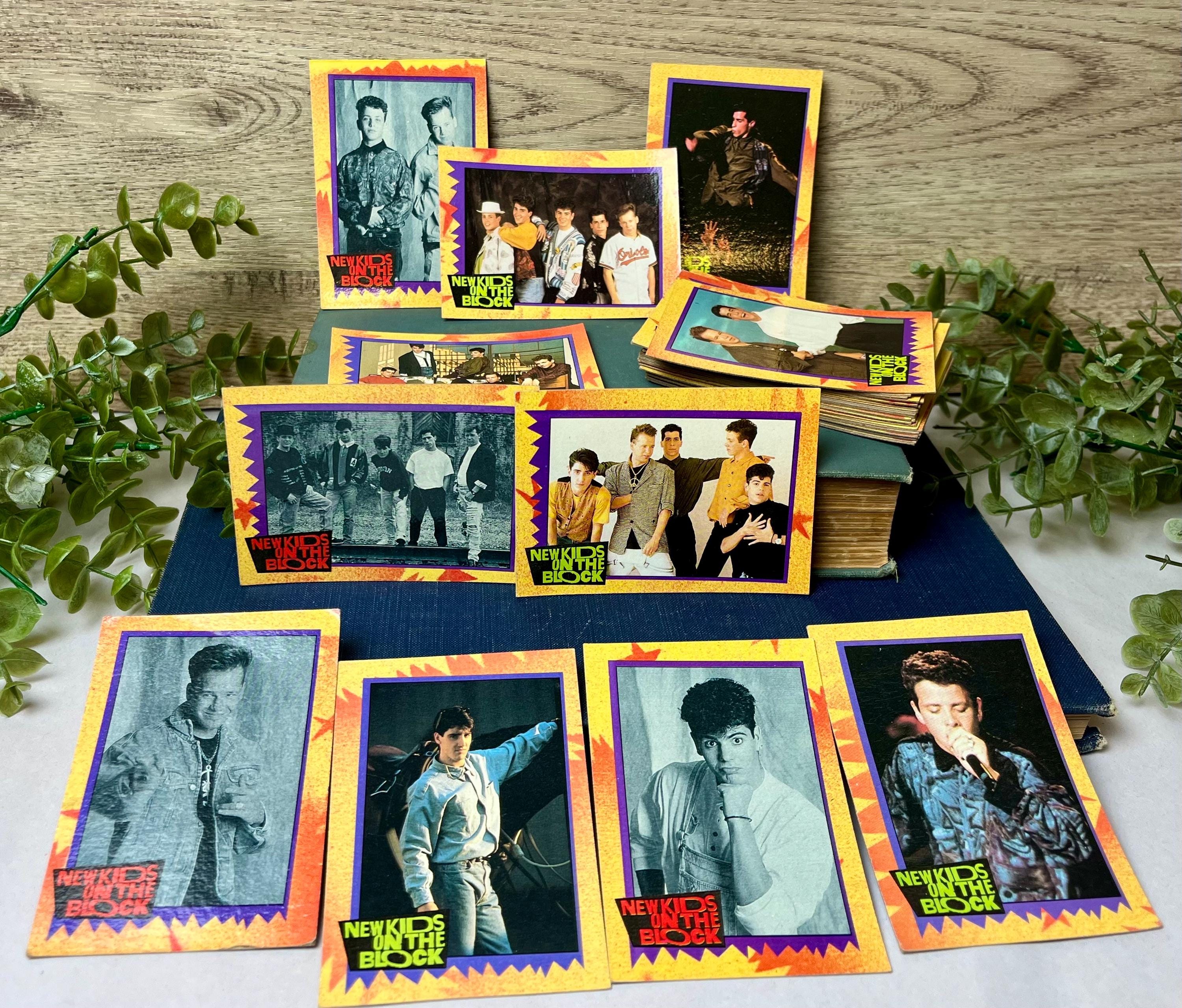 Step back into the late 1980s with this original set of New Kids on the Block trading cards! These vibrant cards feature full-color and black-and-white images of the iconic boy band in their prime—perfect for fans and collectors of nostalgic pop culture.