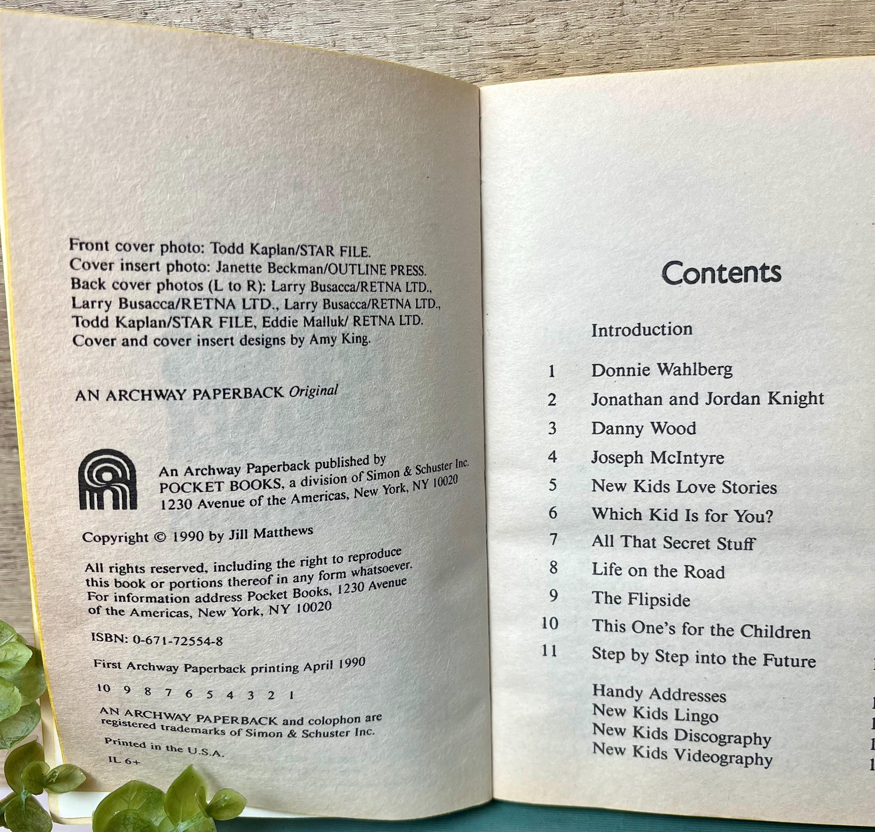 π Details: β’ Title: The Lives and Loves of New Kids on the Block β’ Author: Jill Matthews β’ Published by: Pocket Books (a division of Simon & Schuster) β’ Year: 1990 β’ ISBN: 0-671-72554-8 β’ Softcover, 125 pages β’ Includes a bonus photo album section β’ Original cover price: $3.95 US