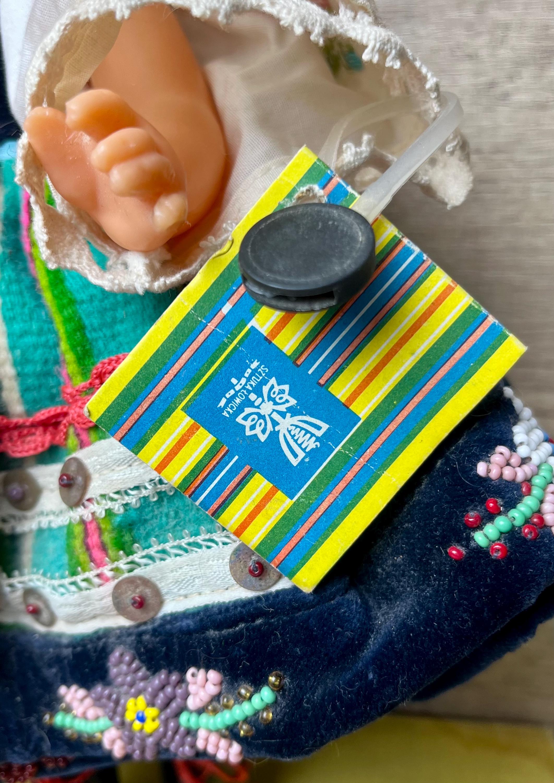 This doll comes with its original tag, making it a lovely collector’s piece or cultural display item. A beautiful example of Eastern European craftsmanship.