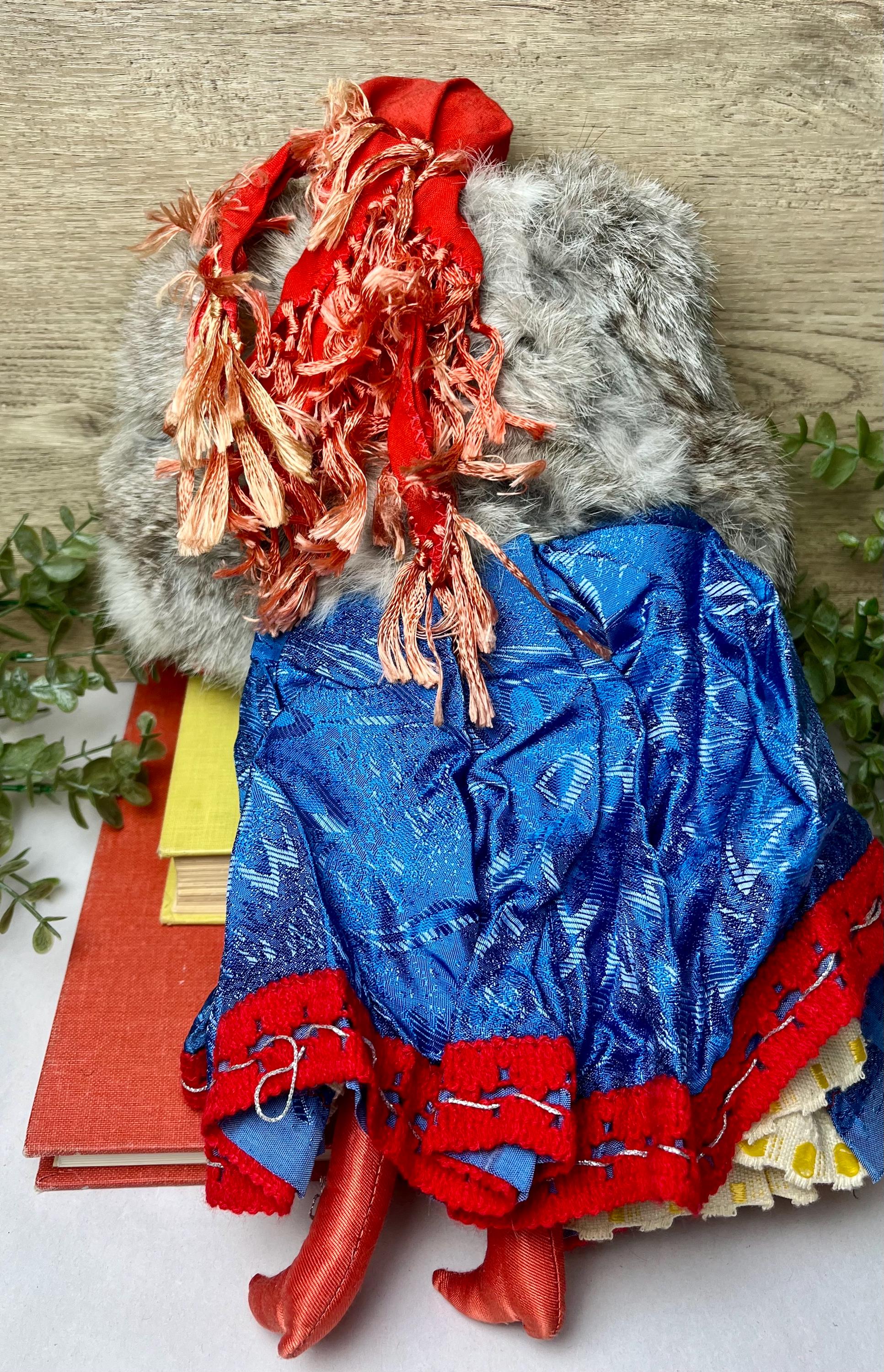 📦 Condition: Very good vintage condition with light wear consistent with age. The faux fur and fabrics are in lovely shape, and the paint remains vibrant. Please review photos for details.