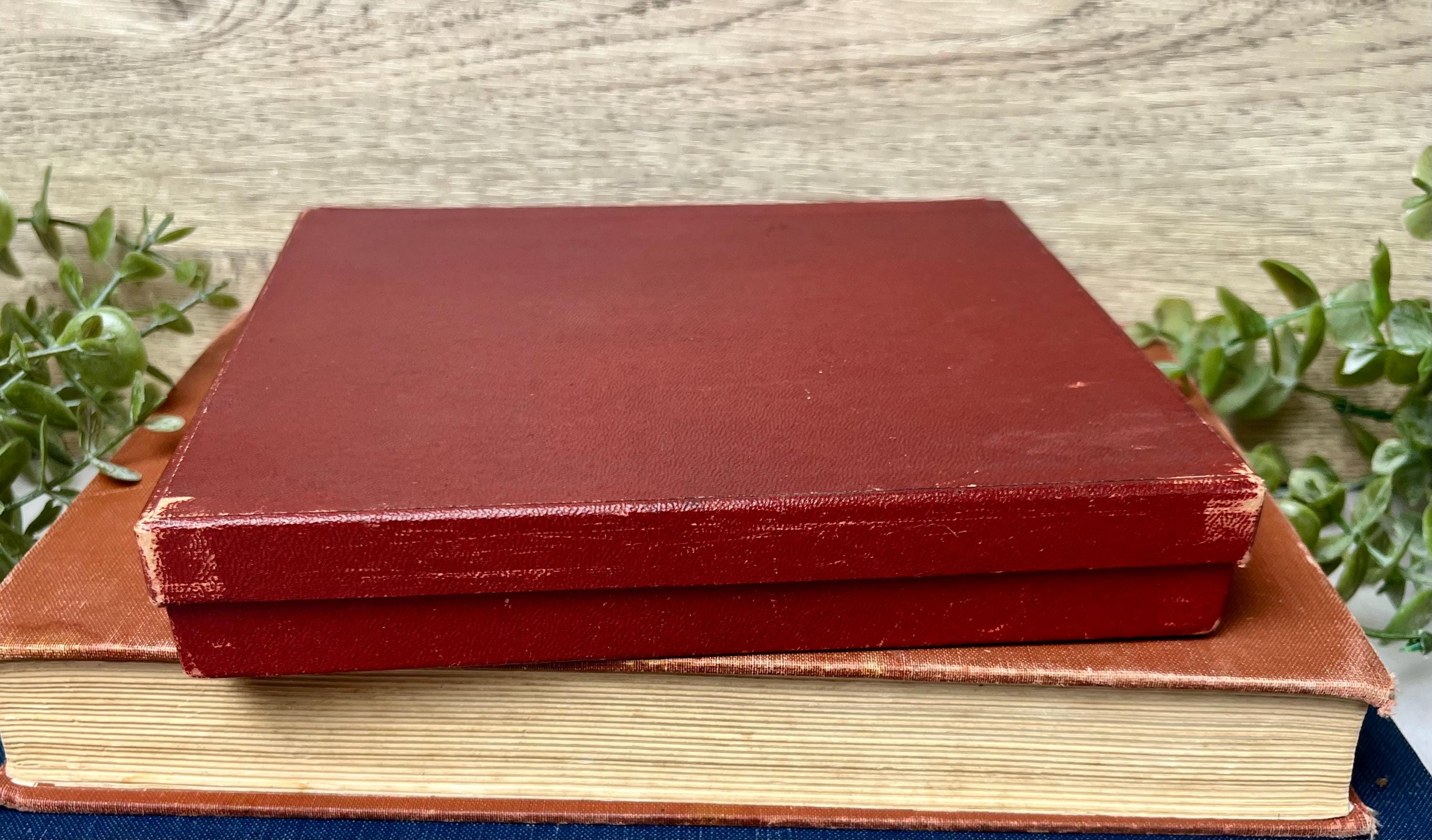 Step back into a classic office of the past with this authentic vintage Dennison Handy Box No. 80 — a beautifully preserved mid-century office organizer made in the U.S.A. The rich red box features multiple compartments, still containing several original vintage supplies, making it a charming display piece or a functional collectible.