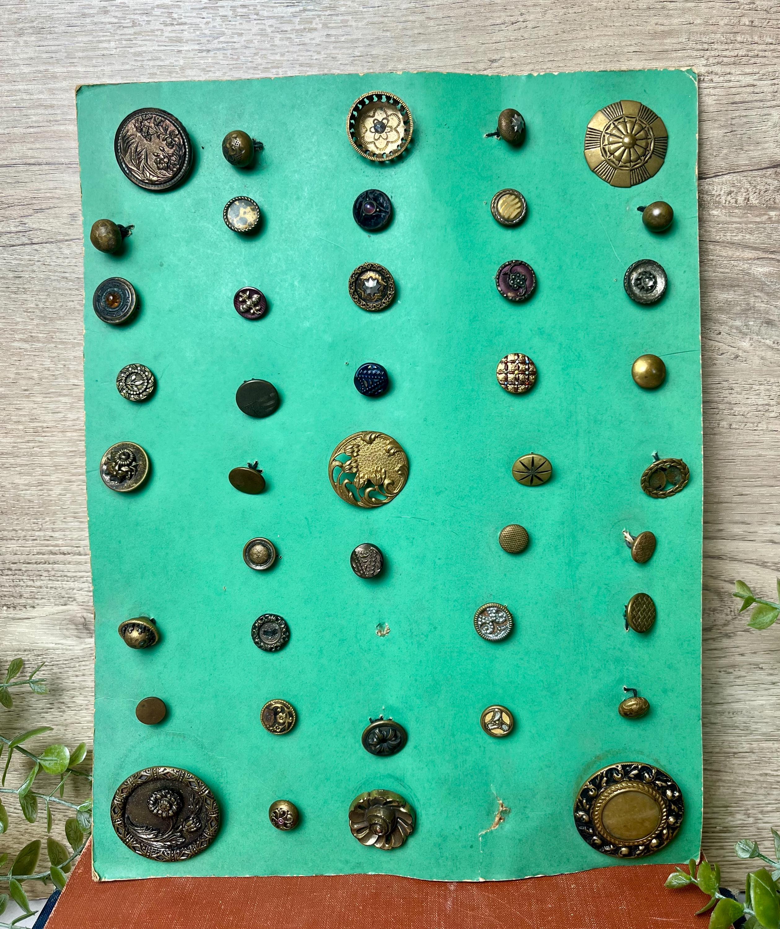 📏 Details • Era: Late 19th century to 1940s • Materials: Brass, metal, glass, jet, novelty plastics • Condition: In good antique condition with expected light age wear and patina • Boards are sold individually, but can be purchased together as a collection.