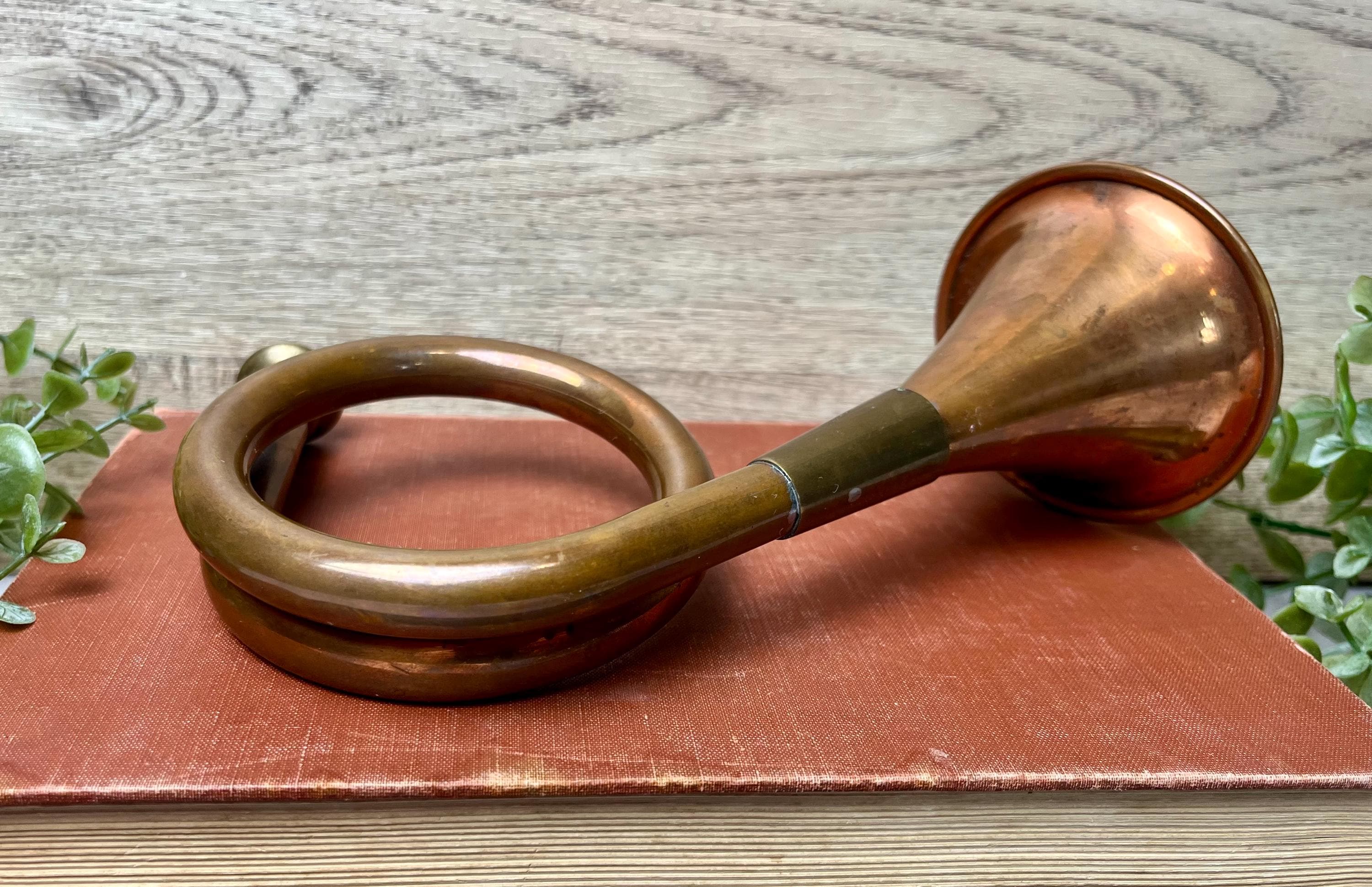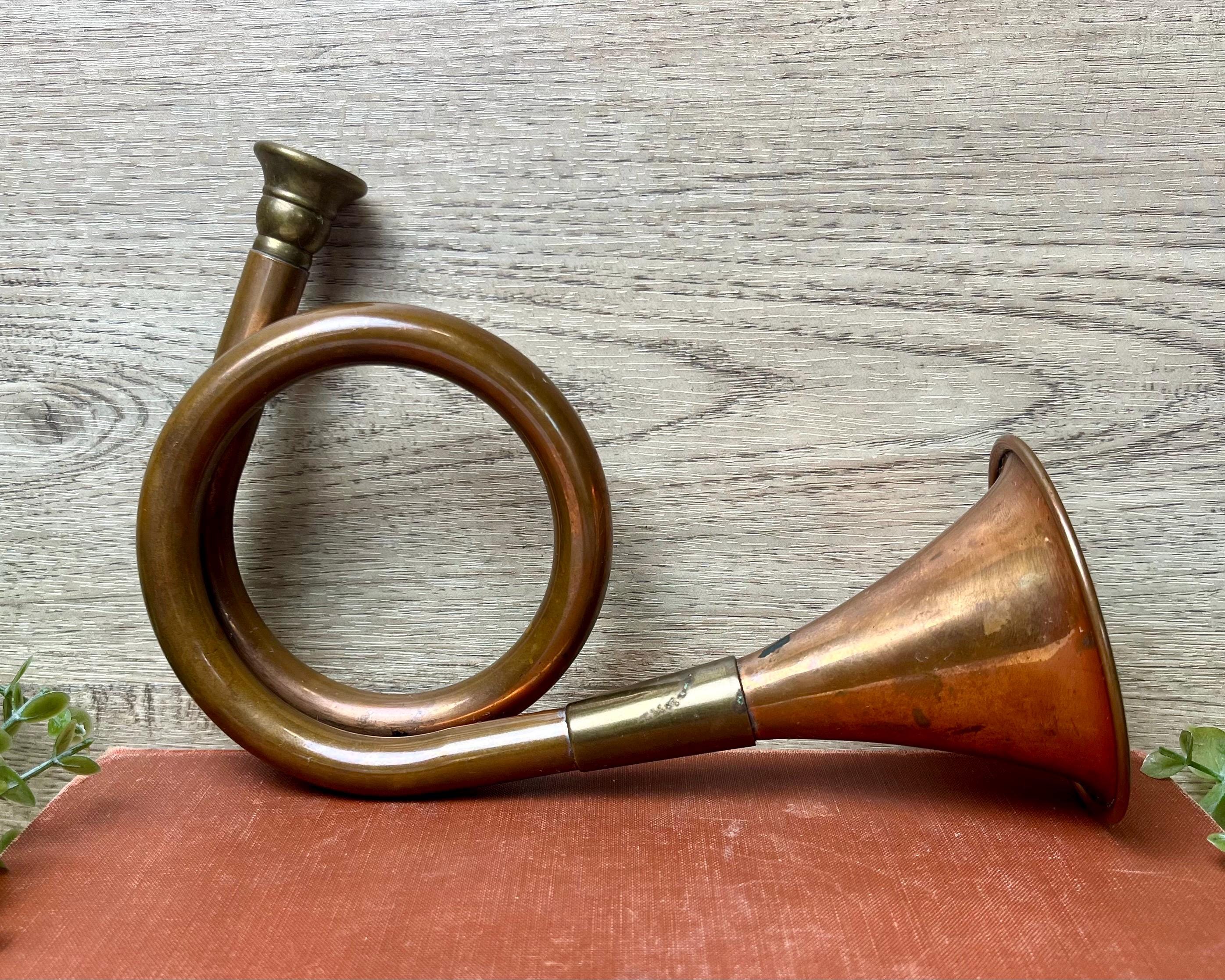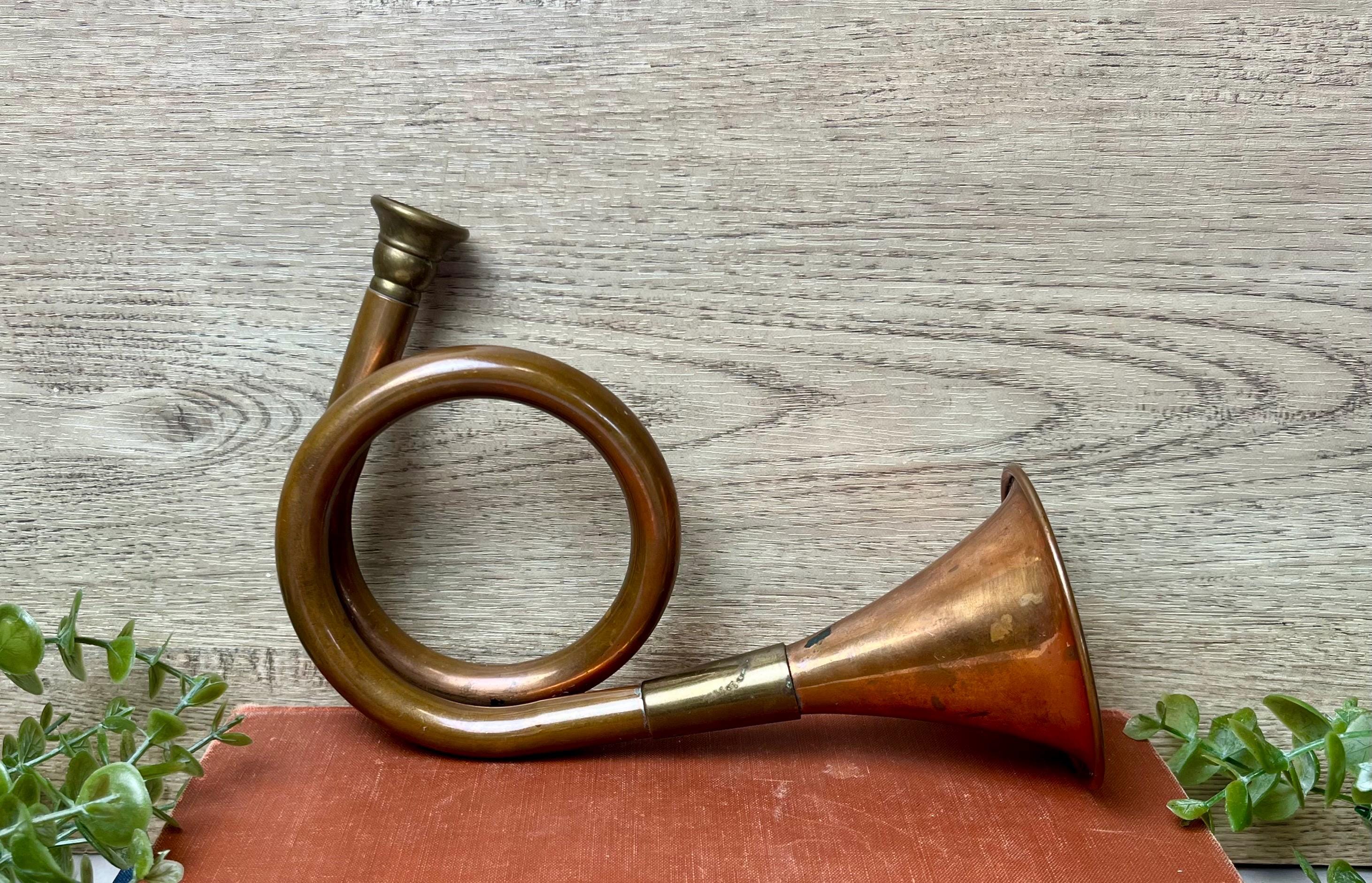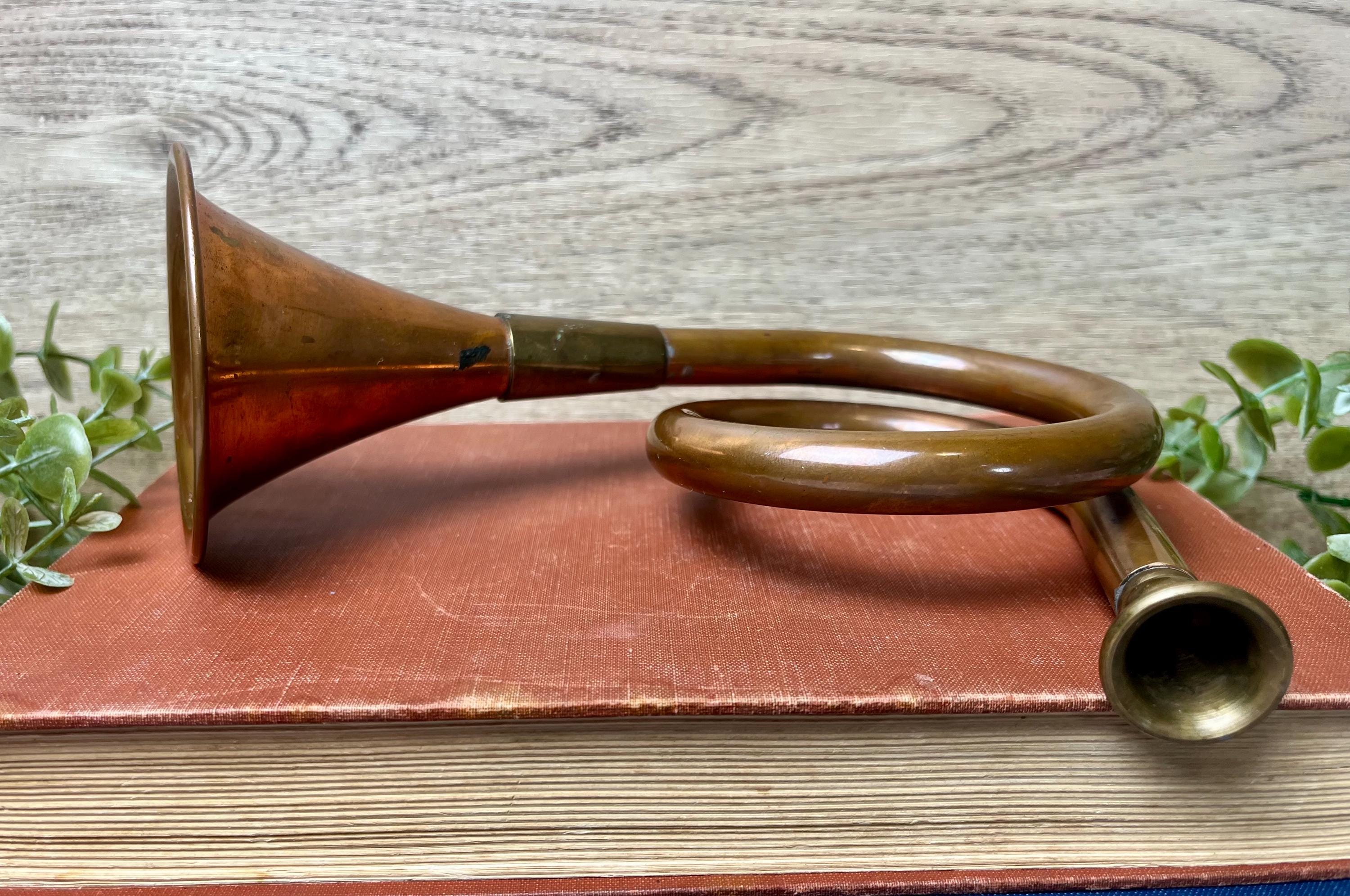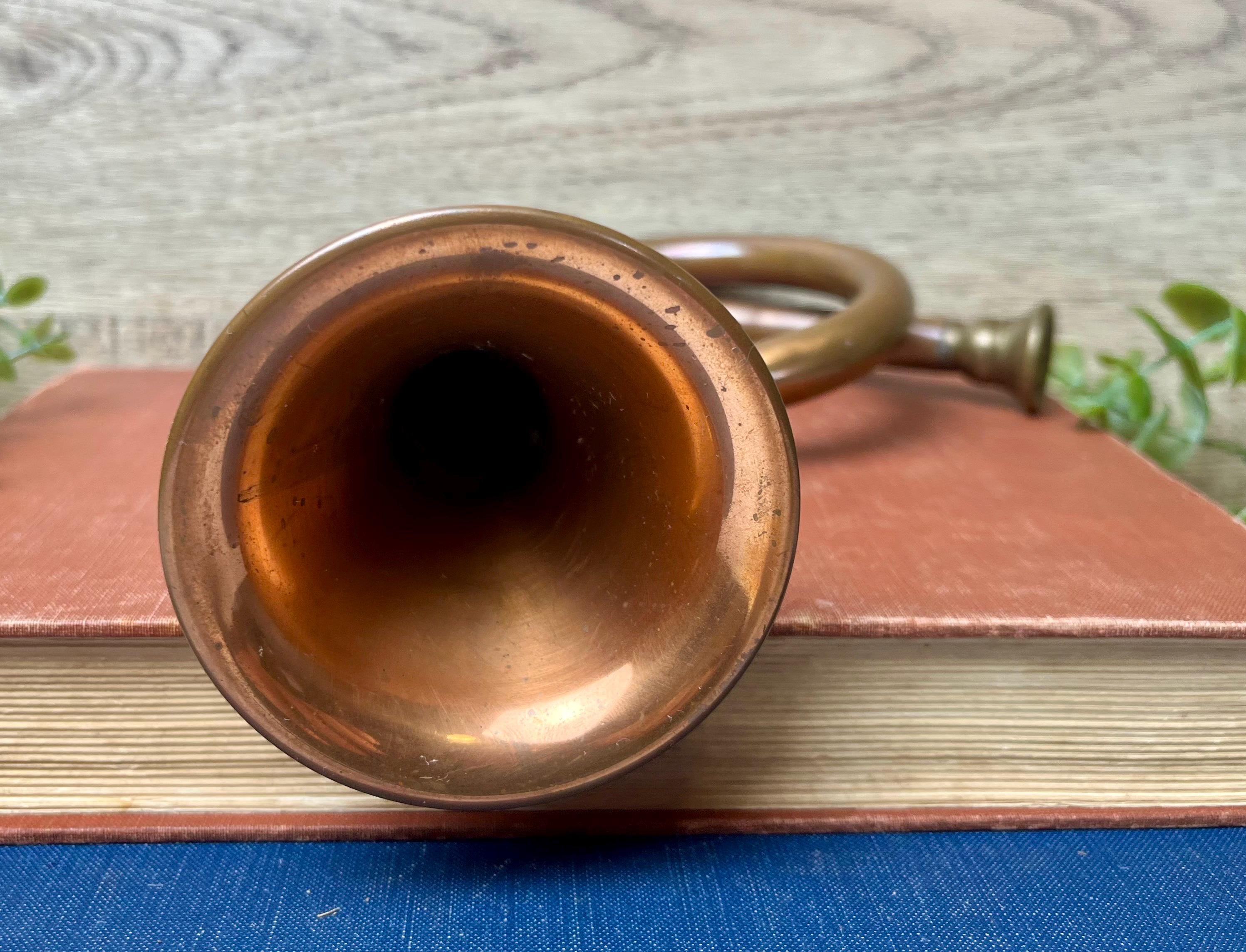 Add timeless charm to your collection with this authentic late 19th century brass bugle horn or fox hunting horn. Crafted from solid brass with a beautiful aged patina, it’s a stunning piece for vintage decor, collectors, or musical display.