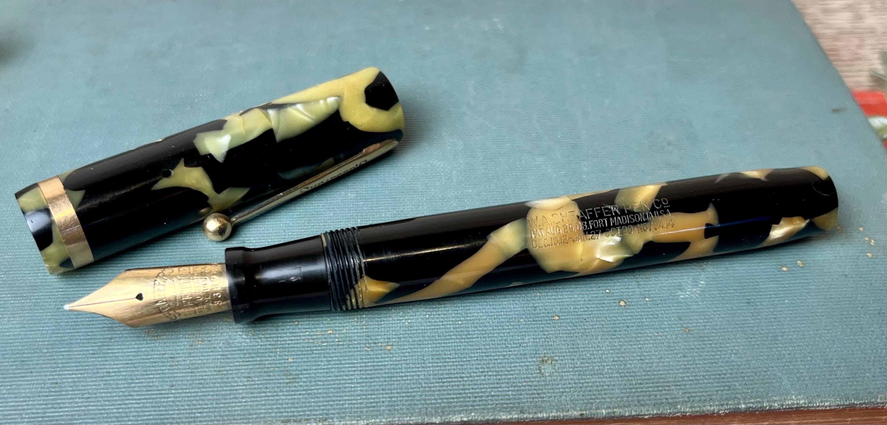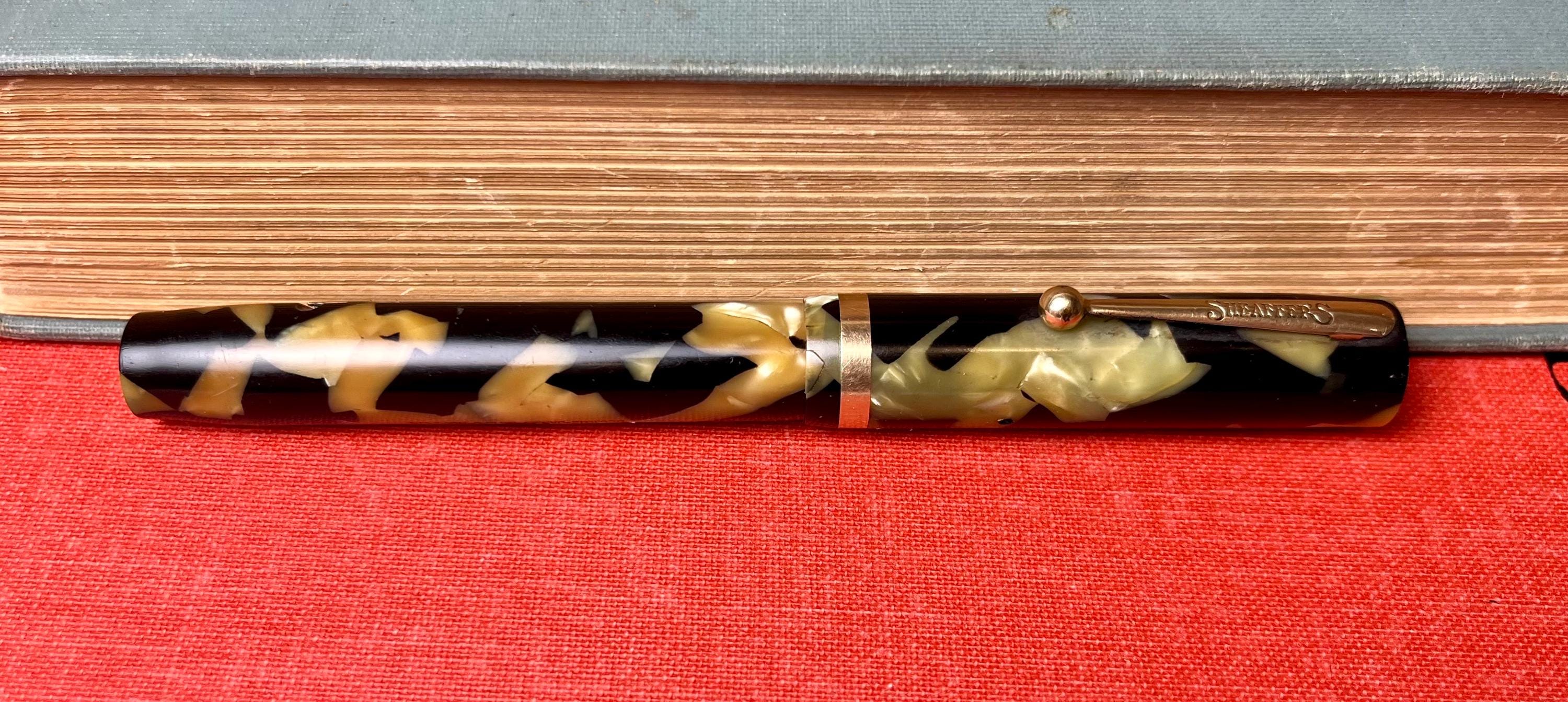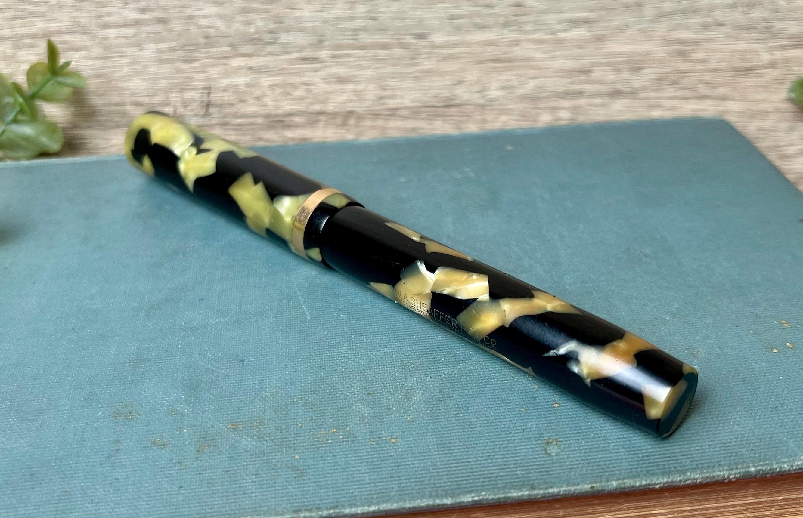🖋 Features: • Classic flat-top silhouette — a hallmark of 1920s Sheaffer craftsmanship • Gorgeous marbled pattern with warm gold accents • Solid 14K gold Lifetime nib for superior writing performance • A sought-after model for both collectors and vintage pen users