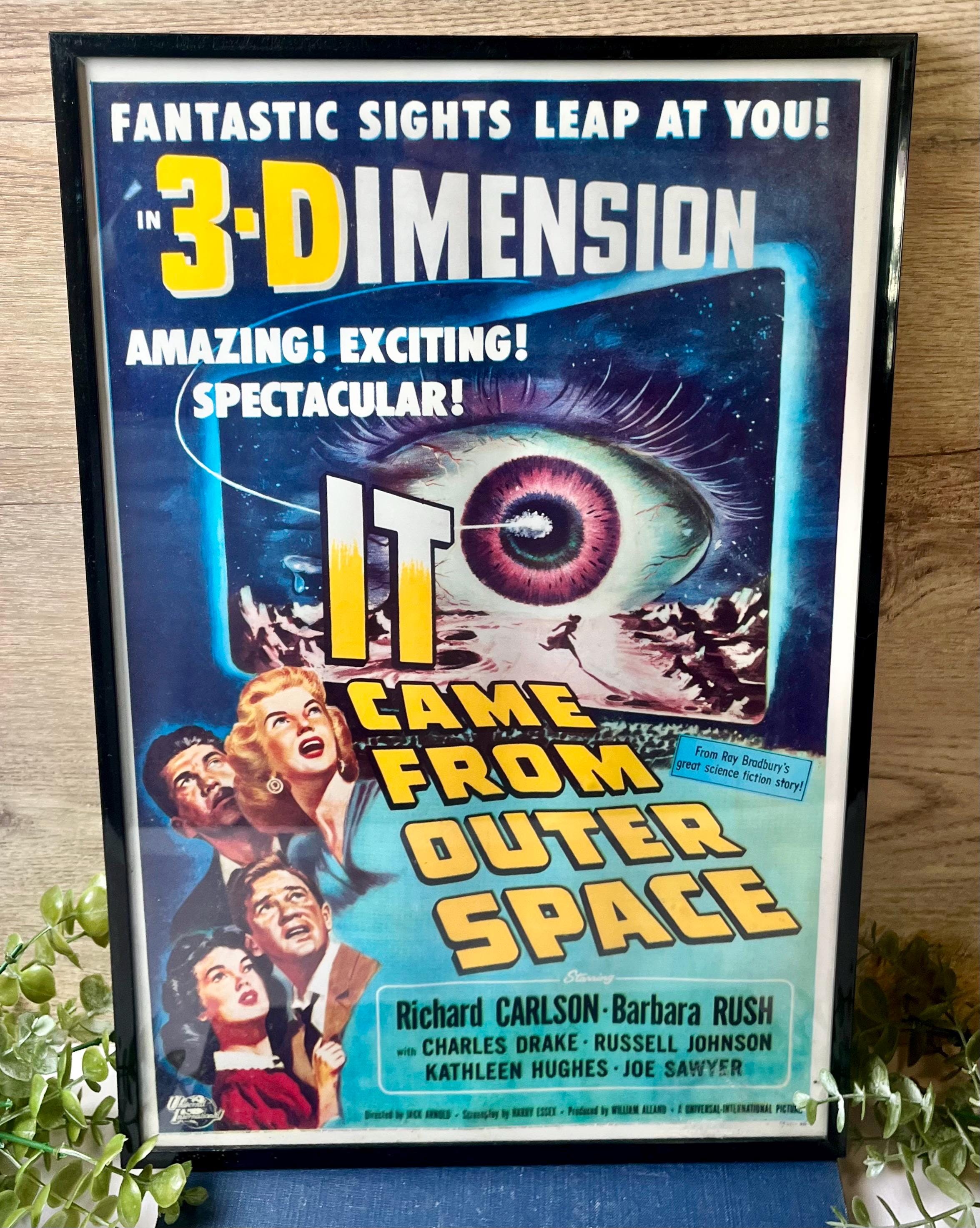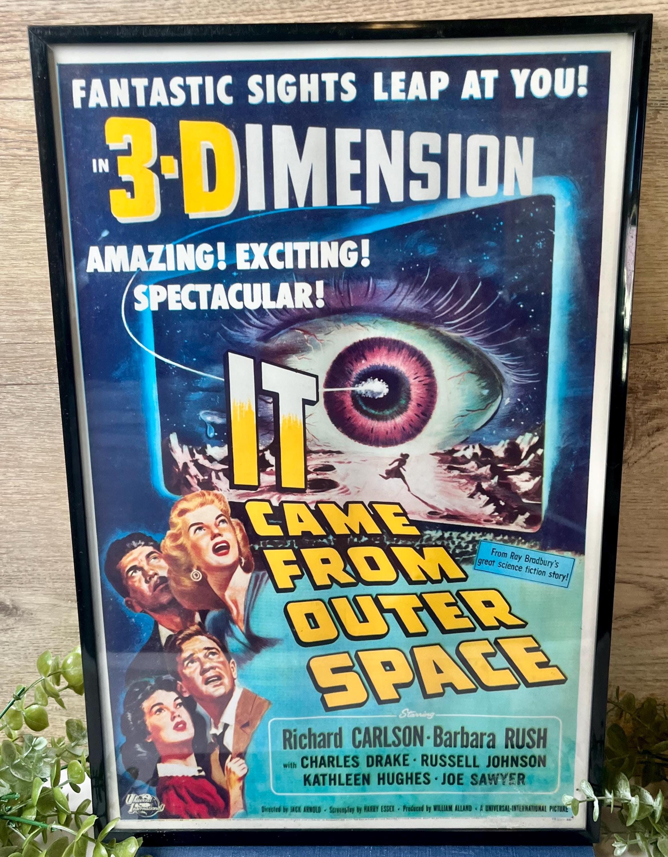Details: • Title: It Came From Outer Space • Year: 1953 • Type: Original movie poster (not a reproduction) • Dimensions (approx.): 17” x 11.5” (framed) • Frame: Generic modern frame (included at no added value) • Condition: Excellent color and detail; minor age-related wear consistent with vintage posters.