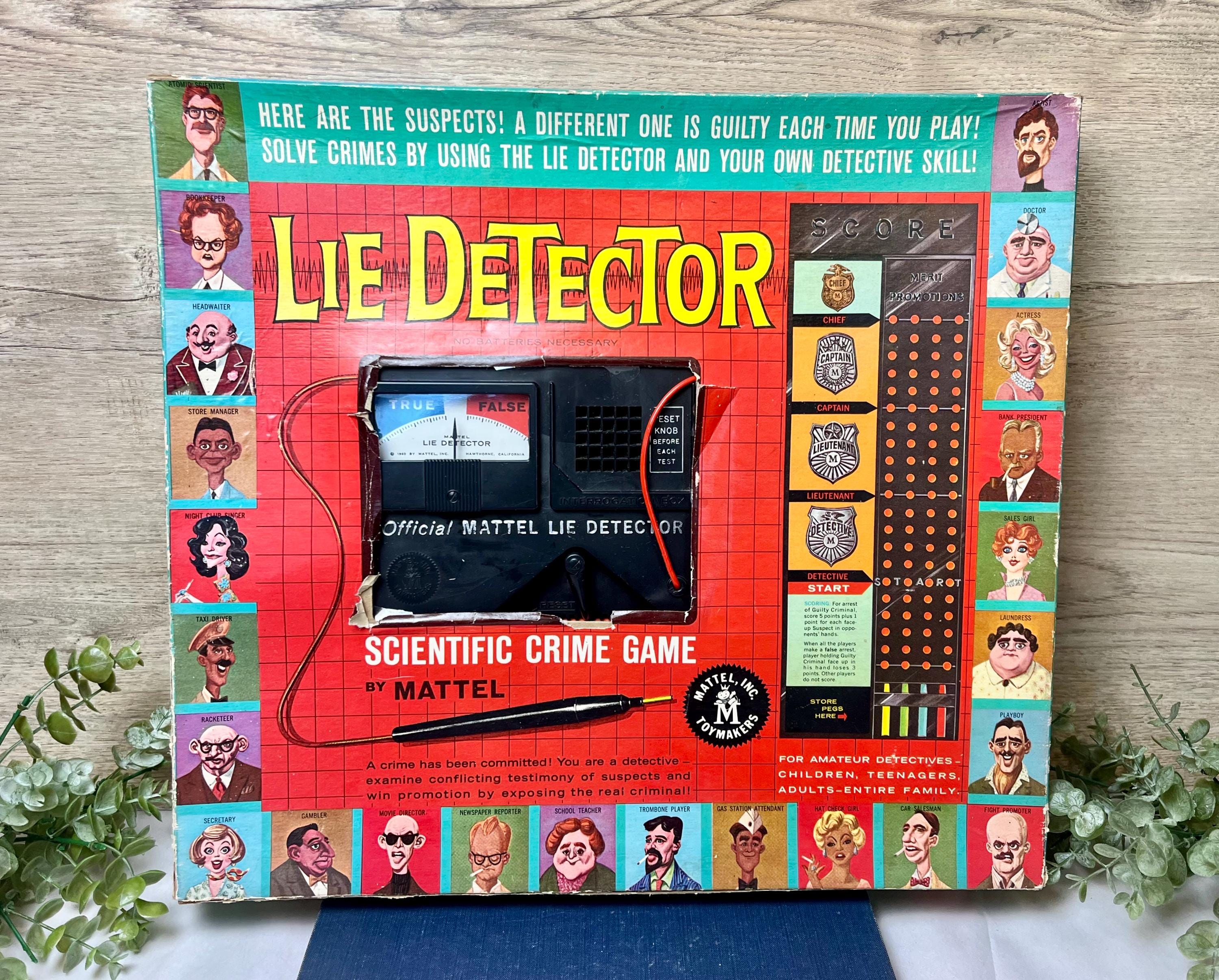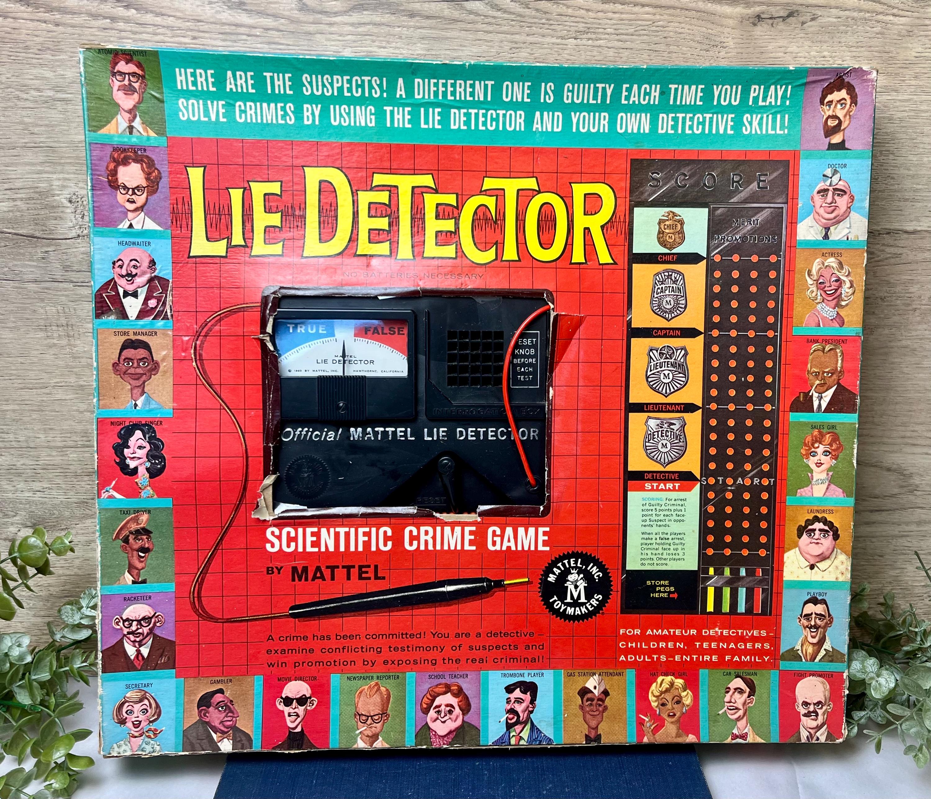 Put your detective skills to the test with this 1960 Mattel Lie Detector Scientific Crime Game, an iconic mid-century classic for mystery and toy enthusiasts alike. This vintage game features the Official Mattel Lie Detector device—an ingenious mechanical gadget used to reveal who’s telling the truth and who’s lying among the 24 colorful suspects.