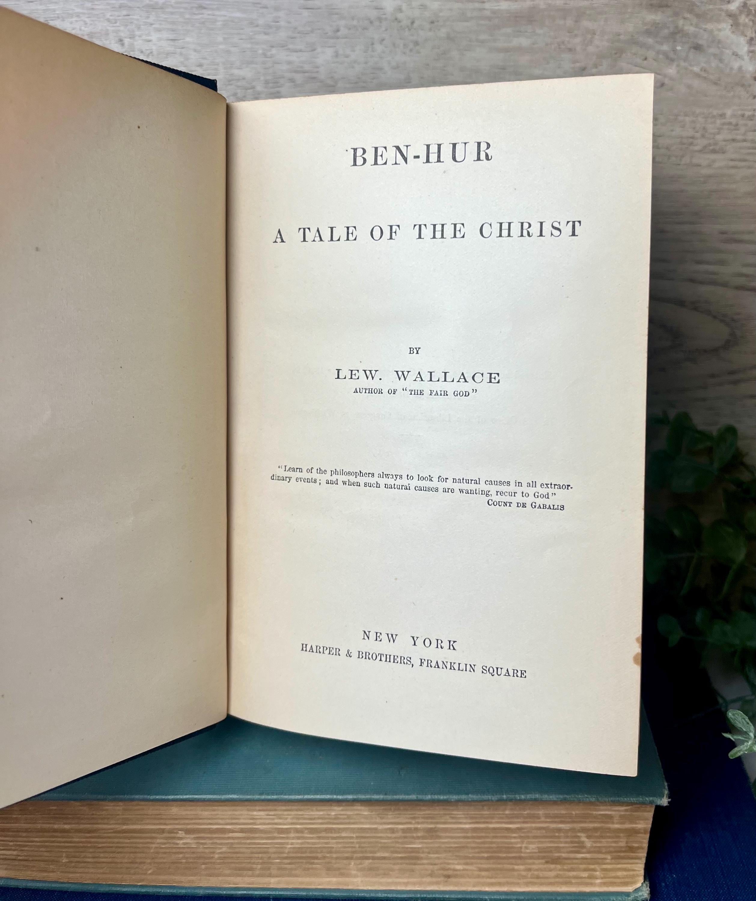 Details • Title: Ben-Hur: A Tale of the Christ • Author: Lew Wallace • Publisher: Harper & Brothers, Franklin Square, New York • Edition: First Edition • Copyright Date: 1880 • Format: Hardcover, blue cloth binding • Language: English • Printed in: United States