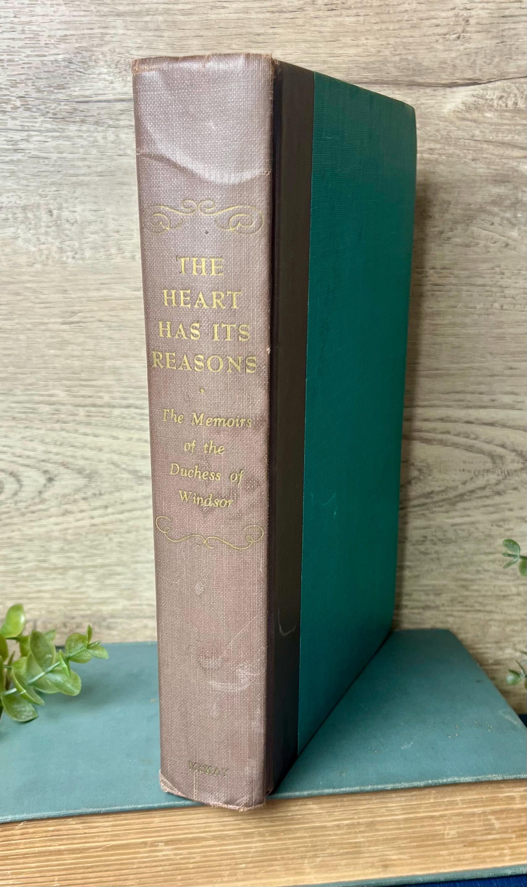 A vintage hardcover copy of The Heart Has Its Reasons: The Memoirs of the Duchess of Windsor, published in 1956 by David McKay Company, Inc., New York.