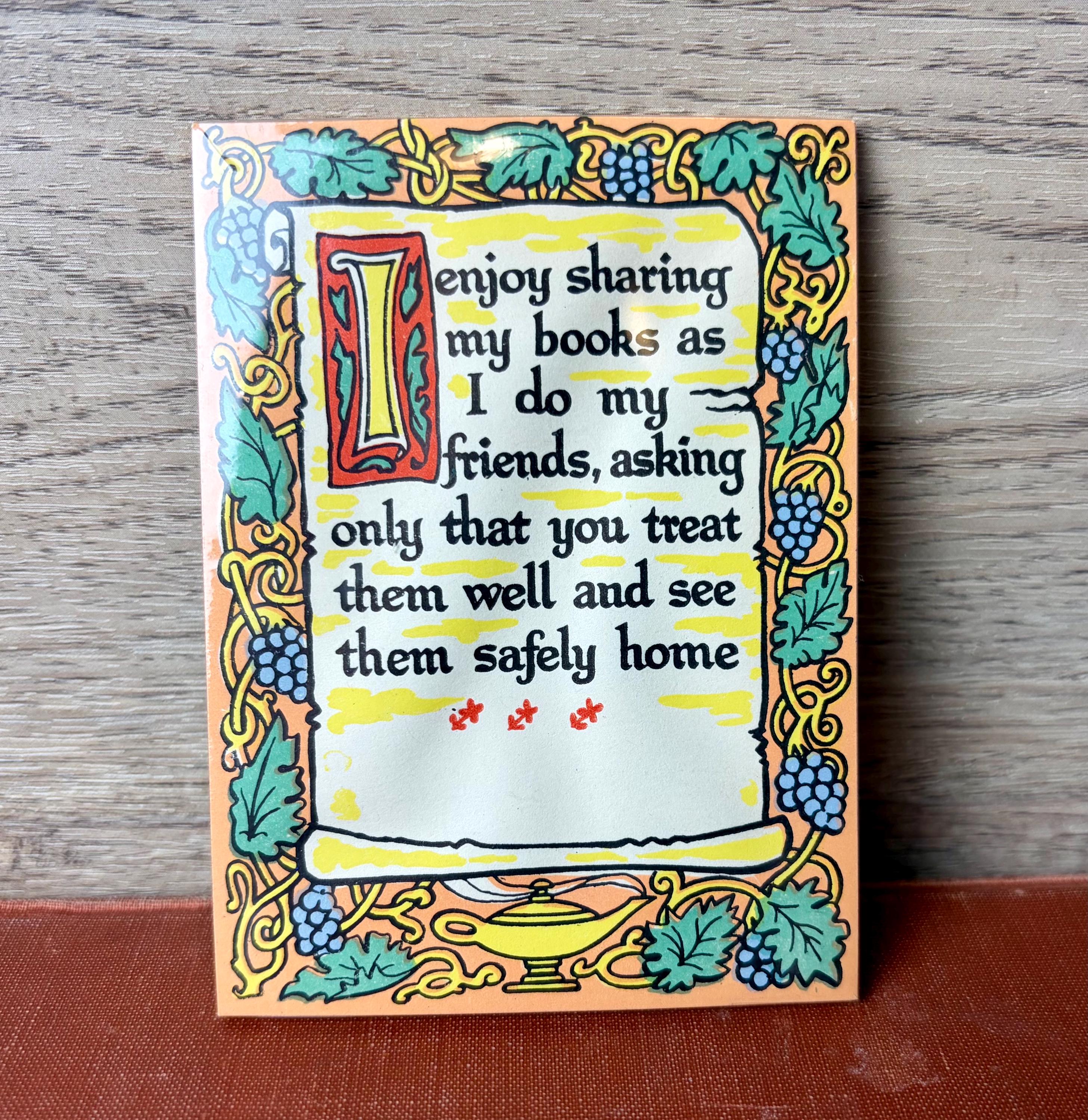 “I enjoy sharing my books as I do my friends, asking only that you treat them well and see them safely home.”