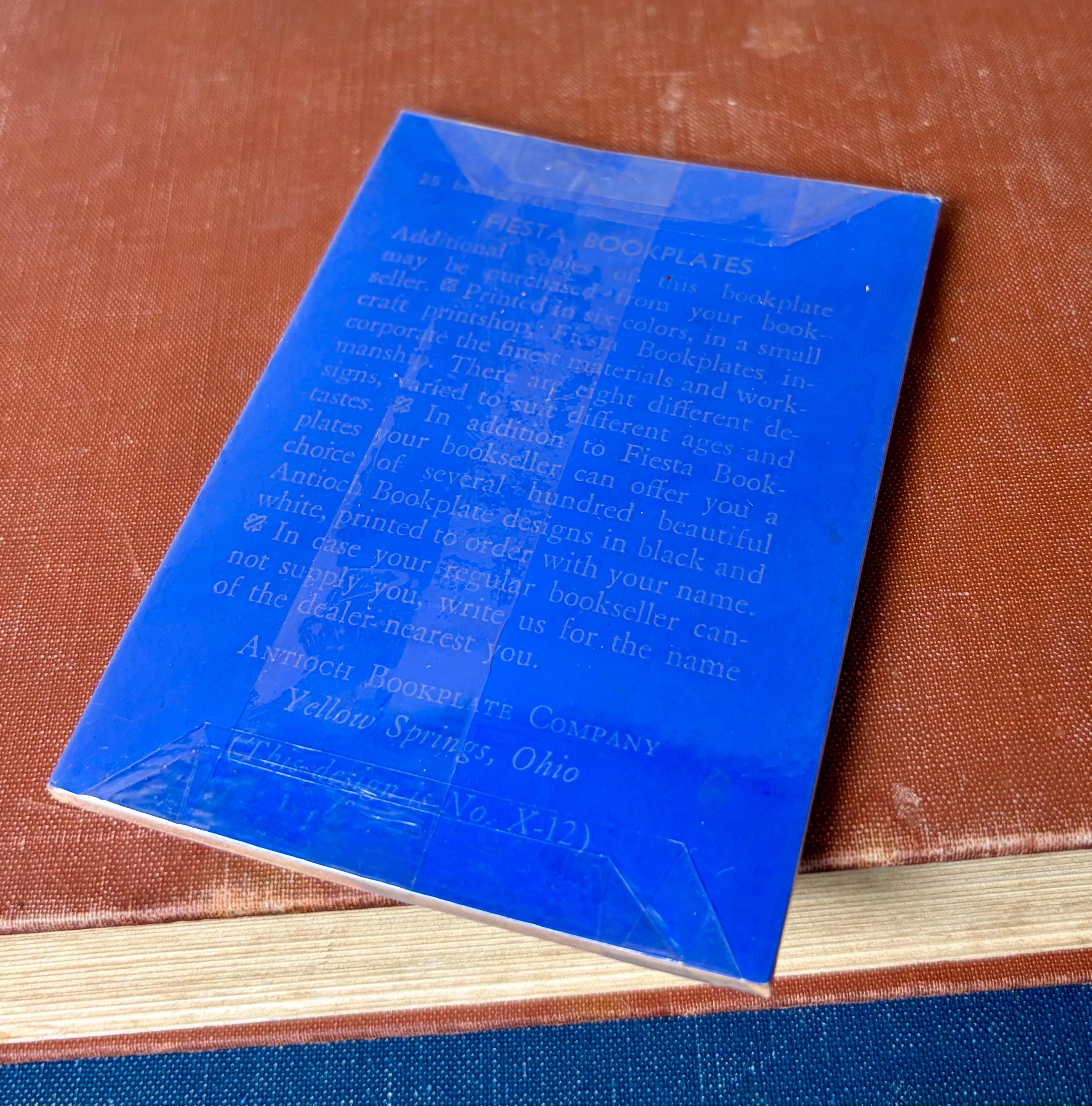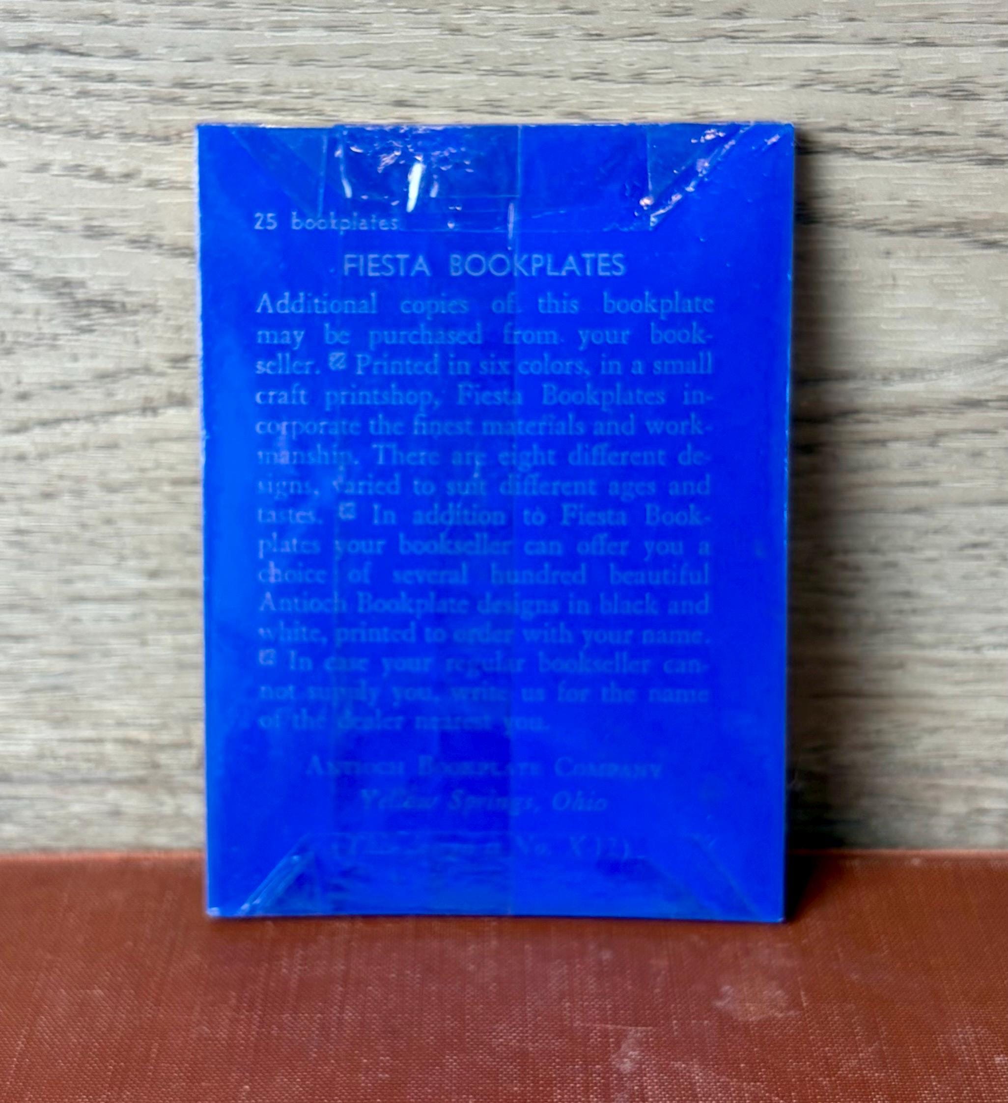Beautiful vintage Fiesta Bookplates, featuring an ornate grapevine and scroll border with a classic book-lover’s inscription. This unused set comes in its original blue Fiesta Bookplates packaging, adding strong collectible and display appeal.