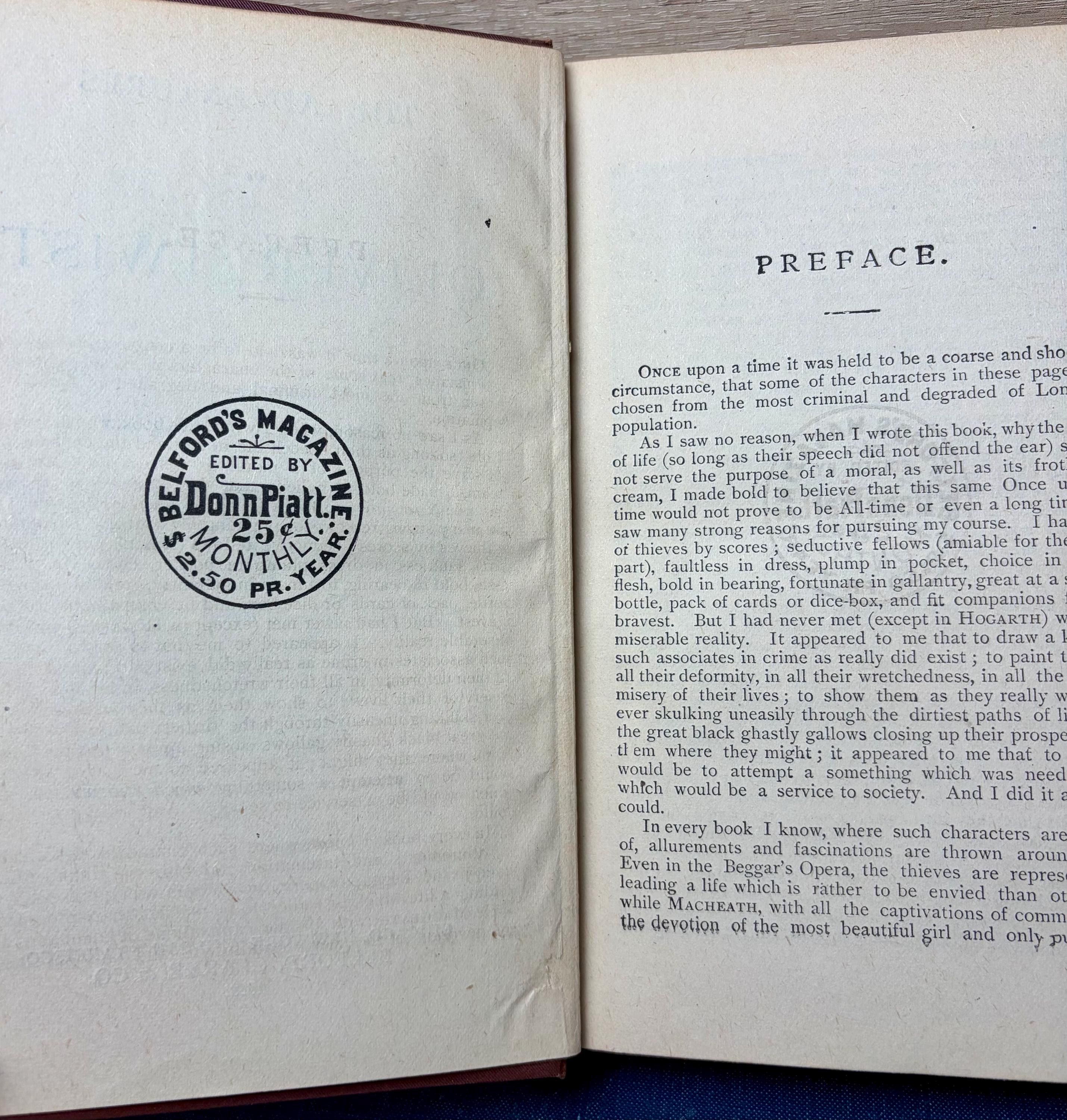 Features of this Copy: • Year: 1888 (Dated on the title page). • Publisher: Belford, Clarke & Co. • Illustrations: Contains the atmospheric engravings by James Mahoney, who was chosen to illustrate the Household Edition of Dickens' works in the 1870s. • Unique History: The front flyleaf contains a beautiful handwritten ink inscription from Christmas 1888. This places the book exactly in time and adds a touch of whimsical Victorian charm. Condition Report: This book is in Good antiquarian condition. The decorative boards are well-preserved with sharp details and a gold-gilt titled spine. There is light shelf wear to the spine ends and corners. The interior pages have aged to a warm cream tone with minimal foxing. The binding remains sturdy and intact.